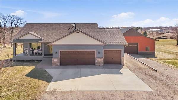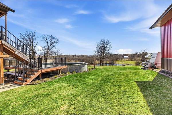 Welcome to your dream property~ where comfort, quality, and lifestyle come together seamlessly. This stunning 4-bedroom, 3-bath home on 2.5 acres offers thoughtful upgrades, beautiful finishes, and incredible outdoor living spaces designed for both relaxation and entertaining. From the moment you arrive, you're greeted by a warm and inviting front porch, perfect for morning coffee or unwinding at the end of the day. The heart of the home is the beautifully equipped kitchen, complete with a gas stove, stainless steel appliances, and a large island. The island has room for an ice machine, ideal for hosting and everyday convenience. From the kitchen, walk out to the expansive 20x16 covered deck w/maintence-free decking and aluminum railing. The main level also features the master bedroom with a walk-in closet and full bathroom with a jetted tub, as well as a second full bathroom and 2nd bedroom. Walk downstairs to a second family room with a cozy gas fireplace, 2 more bedrooms, a 3/4 bathroom, and a room that could function as an office, craft room, or storage. The lower level walks out to the expansive backyard. Step outside and experience an above-ground pool, peaceful pond, and a massive 32x40x12 pole shed w/concrete floor and a 100-amp panel. There is also a gravel parking pad for an RV with 30 amp power and a septic hookup. Also attached to the house is a 3-stall heated and insulated garage. The home is built for convenience and peace of mind with a whole-house generator backup, LP siding installed in 2023, a new roof installed in 2023, a central vac system, a water softener, and a whole-house iron remover. This property truly has it all. Space, upgrades, and features you rarely find all in one place. A perfect blend of everyday comfort and elevated living. Homes like this don't come along often. Schedule your private tour today and see firsthand what makes this property truly exceptional!