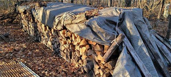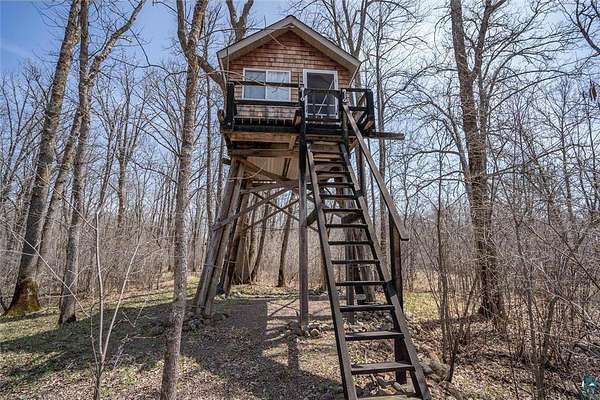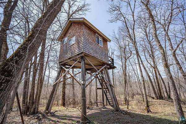 Across the river sits a rustic treehouse wired for electricity and propane-ready for heat, perfect for hunting, wildlife viewing or overnight stays. The river bridge, canoe, and a generous supply of oak firewood are included. Room measurements/sq ft are available within the property photos.