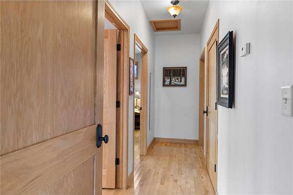 This spacious one-level home with an unfinished lower level provides over 3,000 sq ft & showcases stunning hardwood floors, triple-pane Pella windows, solid oak paneled doors, and soaring tongue-and-groove vaulted ceilings paired with additional tall ceiling heights that enhance the open feel. The kitchen offers custom hickory cabinetry, granite countertops, & stainless-steel appliances (brand-new refrigerator).