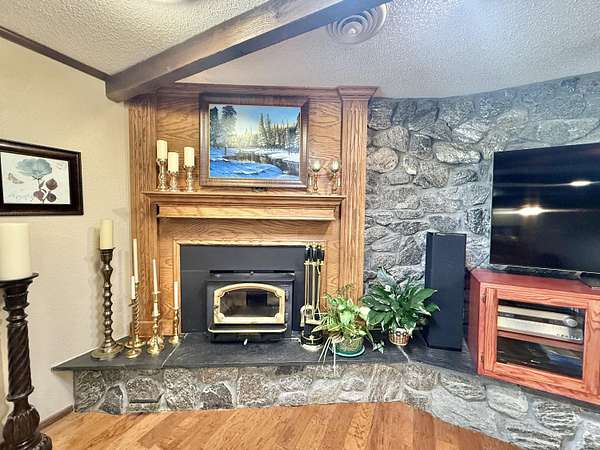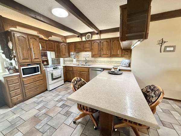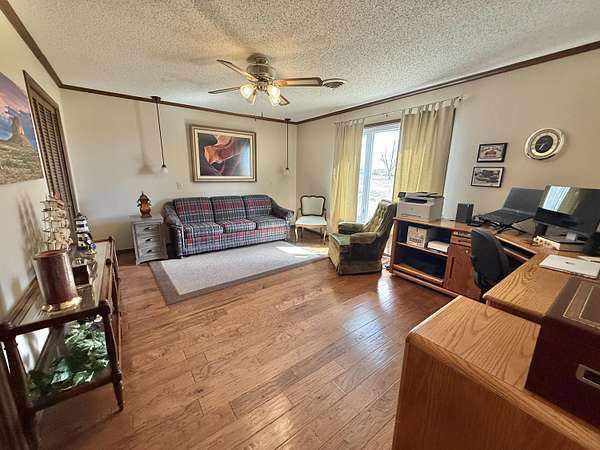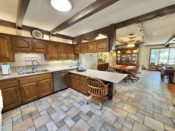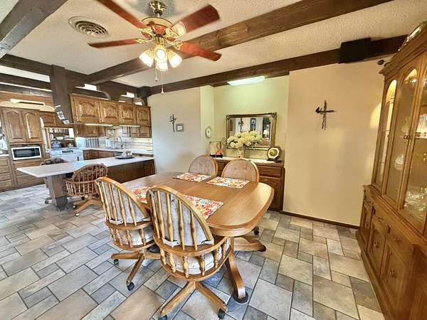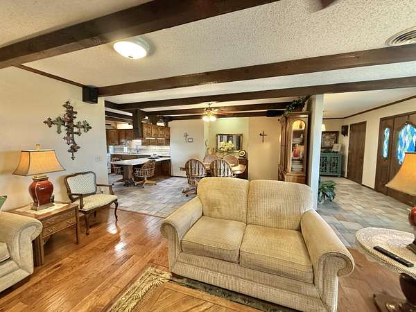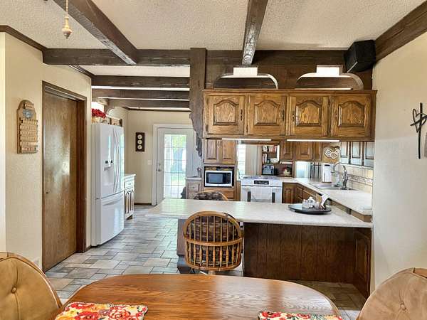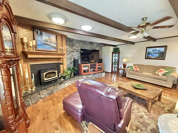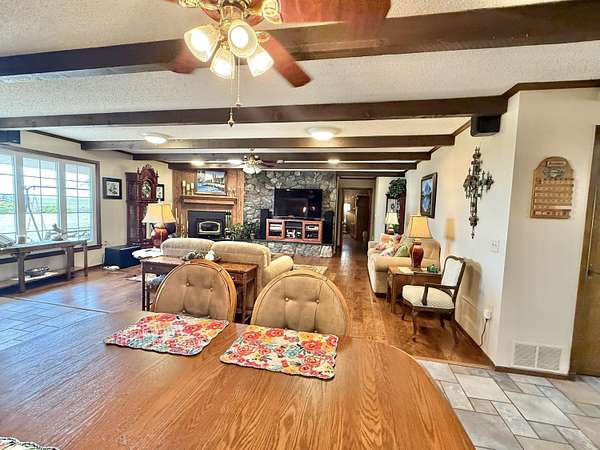 Really nice custom built county home. Large living room with an open concept and massive stone fireplace. The functional kitchen has plenty of countertop space and a breakfast bar plus a large pantry. A huge master bedroom features a private bathroom with double sinks and a shower. The three guest bedrooms share a large hall bathroom. Doing laundry will be a breeze in the workable utility room. It has a sink and tons of storage plus another bathroom. The double garage has a safe room nestled in the corner. There is also a nice 2nd house with one bedroom, one bathroom, a basement, a large utility room and 3 car garage. The main house has approximately 3,076 SF and the small house has 1,234. Solar panels, generator, new septic system plus a windmill on 6 acres.