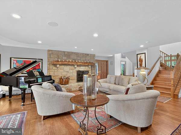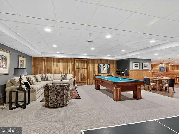 - Additional Stairway, Bar, Built-Ins, Carpet, Eat-In Kitchen, Entry Level Bedroom, Formal/Separate Dining Room, Island Kitchen, Primary Bath(s), Recessed Lighting, Soaking Tub Bathroom, Stall Shower Bathroom, Table Space Kitchen, Traditional Floor Plan, Tub Shower Bathroom, Walk-In Closet(s), Wet/Dry Bar, Window Treatments, Wine Storage, Wood Floors