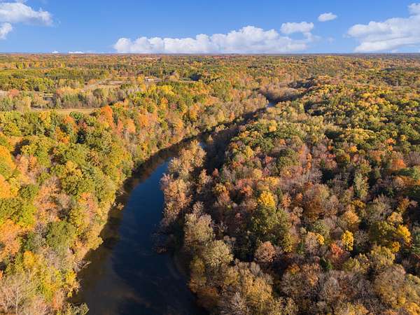 Stunningly beautiful, this 2,500 square foot riverfront home spans nearly 5 acres and boasts an impressive 325 feet of Muskegon River frontage! Freshly painted, this home offers 4 spacious bedrooms, three bathrooms, and a main-floor primary bedroom that features an oversized whirlpool tub in its attached bathroom. Step outside onto the wrap-around deck, which offers breathtaking river views, surrounded by a wall of windows and an open floor plan with cathedral ceilings. The kitchen, equipped with granite countertops and a large center island, is perfect for entertaining guests. Upstairs, you'll find two additional spacious bedrooms, a full bath, and a loft that overlooks the serene river. The finished lower level includes a cozy family room with a wood-burning stove, a fourth bedroom, a full bath, and a convenient laundry room. Don't miss out on the 3-season porch, the heated 3-stall garage, and the 24x40 pole barn, which provides additional amenities and storage space.