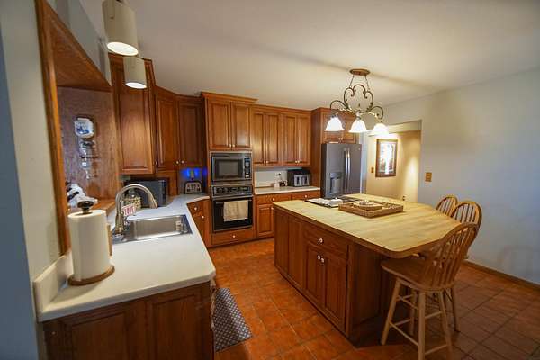 Highly sought after location on the south side of Waterloo on a hard surface road. This Executive Equine horse property is set up perfectly with 2 driveways one for the house and one for the shop/ indoor arena 60 x 96 and a stall barn 45 x 32 with 4 stalls, tack room and an area to store your hay. Fenced in pasture area and you could fence in more area as well. Or someone could use these buildings for a shop or local business as well with county approval. This magnificent home has a great room 22 x 30 with wood ceilings and a fieldstone wood fireplace open to the kitchen and dining room . Then you will love relaxing in the Sun room that has a great view of the back yard and the fenced in pasture for the horses its located just off the 3 stall garage which is 960 sq feet. There is a den with a wood fireplace great area for an office. This home also has a stunning formal living room right off the entry of the home. Bedrooms are all located perfectly so 3 of the bedrooms are close to a bathroom and main floor laundry as well. Then the master bedroom is absolutely stunning with a walk in glass block shower, double vanities, storage , bath tub in separate room with a vanity, then a well thought out walk in closet design with tons of storage as well. If needed the master bedroom could accommodate an area for a new born baby as well. Lots of space in the master bedroom. Home has hardwood floors through out the living areas. In the basement you have a nice game room/ children's family room and a laundry room with a 2nd set of washer and dryers. There is an older tennis court in the back yard, that could be converted into a pickle ball court , basketball, soccer, football field, or maybe a neat safe area for your chickens or small hobby animals as well. This property has so much to offer. all on a hard surface road just minutes to shopping and hospitals, high speed internet as well. Absolutely tons of potential and options with this acreage!
