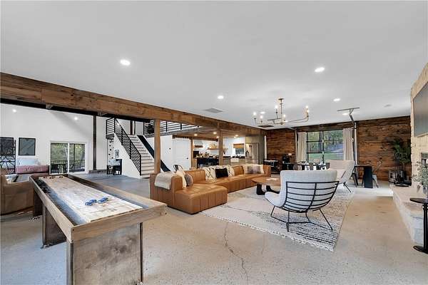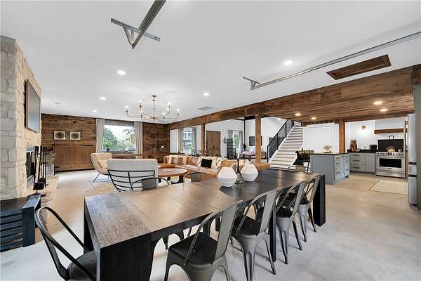 Discover Corvus Creek, a modern masterpiece on 18acres in Bentonville -- where luxury meets adventure. This 6854sqft estate blends farmhouse charm with HGTV-renovated elegance-featuring a main house (4654sqft, 5br/5ba, indoor pool, 4car garage) as well as a 100-yr-old barn (2200sqft, 2br/1ba) transformed by Dave & Jenny Marrs (Fixer to Fabulous) with gorgeously creative custom barnwood finishes. The main residence boasts a chef's kitchen, massive dining room, two huge living rooms, 5bedrooms, and all one level! Ride out your door to adjacent Snowbird Trail mountain bike access, camp in glamping tents along a private gravel loop, or relax by the creek-side pergola and fire pit. Recent upgrades include a 2025 roof, stamped concrete patios, cedar accents, seamless gutters, and Thuja privacy screens. A rare blend of seclusion, recreation, and refined living-schedule your private tour today.