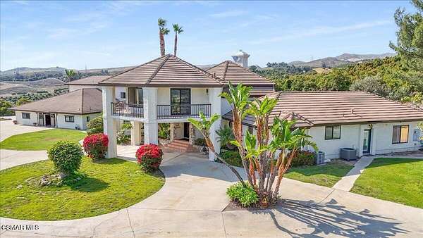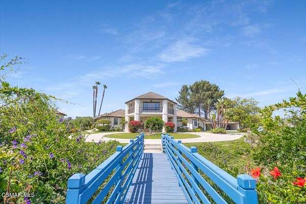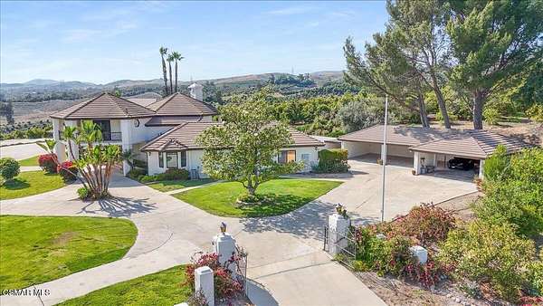 Enjoy panoramic views of the ocean, Channel Islands, and surrounding mountains from this extraordinary hilltop property. Spanning two side-by-side parcels, this private estate offers endless possibilities. The main residence with 3 bedrooms is thoughtfully designed for indoor-outdoor living. You will be whisked away as soon as you walk through the double front doors into the grand Tuscan great room boasting soaring ceilings open to the second story and two sets of floor-to-ceiling French doors and windows with the royal fireplace centered in-between, opening to the pool area and bathing the space in natural light. A separate media room with a luxurious wood built-in wall unit and French doors facing the pool provides an elegant space to relax or entertain, with a half bath offering direct access to the pool and spa area. A spacious kitchen overlooking your private pond features a movable island, endless counter space, sitting bar plus eat-in area, and a dishwasher, while the connected laundry room includes a sink, counter space, cabinetry, and a walk-in pantry. A powder room is conveniently located right off the kitchen and dining for your guests.Nearly every room has doors leading outside, all adorned with plantation shutters as well as the windows. The ground-level primary suite offers a spa-like retreat with a soaking tub, walk-in shower, and an expansive cedar-lined walk-in closet. Additional features include a formal dining room, a guest bedroom with a Murphy bed, and a luxurious, upstairs office/library with rolling ladder, hidden half bath, and a wrap around balcony overlooking the koi pond and views in all directions. You will feel like royalty in your palace. * Outdoor highlights include a sparkling pool and spa, gazebo, built-in BBQ into the chimney (designed for easy conversion to a pizza oven), and a free-standing, tree-shaded relaxation deck for morning coffee with the sounds of birds chirping or afternoon breezes.... Do I sense a nap headed your way? The impressive 8-ft-deep koi pond features a waterfall, spouting fountains, a bridge leading to the deck, and even a rowboat.The second structure includes: A wine tasting room with temperature-controlled wine storage for hundreds of bottles, sink, dishwasher, and mini fridge Two oversized upstairs rooms with stunning views and deck access facing the islands A fully equipped ADU with kitchen, living room, walk-in closet, more storage closets, and separate bedroom A 'barn' space with tool/equipment rooms. The main portion of the barn centered in the building and open to the second level is a partially constructed sound studio with in-floor channeling for wiring--ideal for music, events, or expanded wine tasting with French doors leading outside to more flat, concrete space to entertain. Additional amenities include a 6 car carport (one bay is extra deep for storage or more parking), a private helicopter pad, various fruit trees, and approximately 7 acres of avocado groves. This is a rare opportunity to own a truly one-of-a-kind estate with commanding views, exceptional amenities, and versatile space for entertaining, relaxing, or working from home. Main house is 3 beds, office/library, two full baths, 3 half baths 3,917 sqft. Living area = main house + ADU 450 is 4,367 sqft. 2nd Structure (the Barn) is guest quarters (living area, kitchen, 1 bath, and separate bedroom (450 sqft) Wine Room, craft room(?) Barn/tools/equipment rooms, two large rooms upstairs with deck is 4,267 sqft. ** Sale includes TWO parcels: APN 502-0-080-065 (7.80 acres) and APN 502-0-080-095 (2.27 acres).