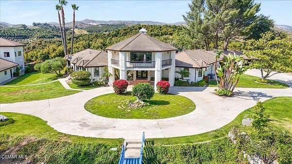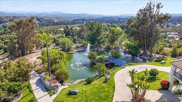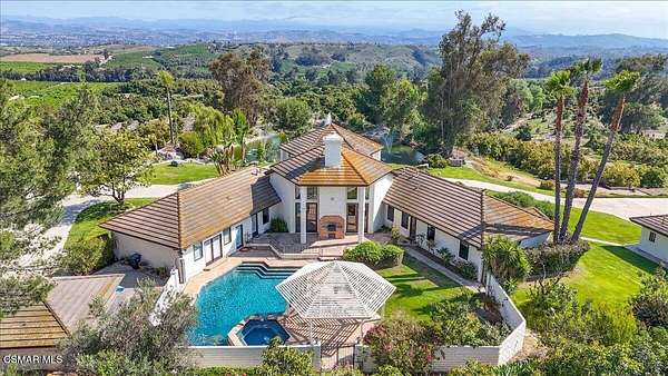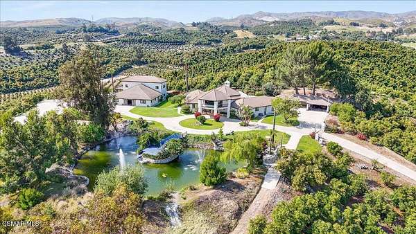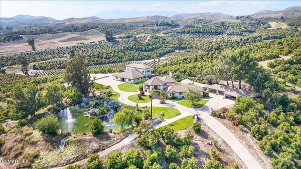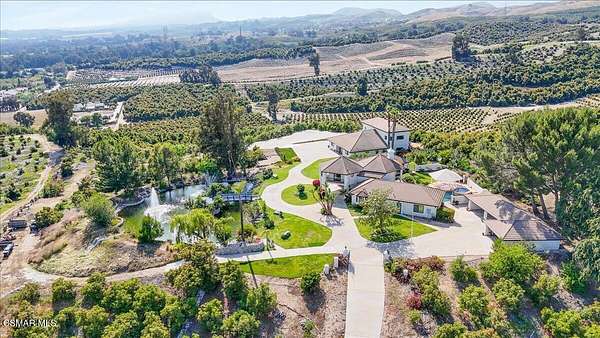 Hilltop Estate with Breathtaking 360 degrees Views!Enjoy panoramic views of the ocean, Channel Islands, and surrounding mountains from this extraordinary hilltop property. Spanning two side-by-side parcels, this private estate offers endless possibilities. The main residence with 3 bedrooms is thoughtfully designed for indoor-outdoor living. You will be whisked away as soon as you walk through the double front doors into the grand Tuscan great room boasting soaring ceilings open to the second story and two sets of floor-to-ceiling French doors and windows with the royal fireplace centered in-between, opening to the pool area and bathing the space in natural light. A separate media room with a luxurious wood built-in wall unit and French doors facing the pool provides an elegant space to relax or entertain, with a half bath offering direct access to the pool and spa area. A spacious kitchen overlooking your private pond features a movable island, endless counter space, sitting bar plus eat-in area, and a dishwasher, while the connected laundry room includes a sink, counter space, cabinetry, and a walk-in pantry. A powder room is conveniently located right off the kitchen and dining for your guests. Nearly every room has doors leading outside, all adorned with plantation shutters as well as the windows. The ground-level primary suite offers a spa-like retreat with a soaking tub, walk-in shower, and an expansive cedar-lined walk-in closet. Additional features include a formal dining room, a guest bedroom with a Murphy bed, and a luxurious, upstairs office/library with rolling ladder, hidden half bath, and a wrap around balcony overlooking the koi pond and views in all directions. You will feel like royalty in your palace. * Outdoor highlights include a sparkling pool and spa, gazebo, built-in BBQ into the chimney (designed for easy conversion to a pizza oven), and a free-standing, tree-shaded relaxation deck for morning coffee with the sounds of birds chirping or afternoon breezes.... Do I sense a nap headed your way? The impressive 8-ft-deep koi pond features a waterfall, spouting fountains, a bridge leading to the deck, and even a rowboat. The second structure includes: A wine tasting room with temperature-controlled wine storage for hundreds of bottles, sink, dishwasher, and mini fridge Two oversized upstairs rooms with stunning views and deck access facing the islands A fully equipped ADU with kitchen, living room, walk-in closet, more storage closets, and separate bedroom A 'barn' space with tool/equipment rooms. The main portion of the barn centered in the building and open to the second level is a partially constructed sound studio with in-floor channeling for wiring-ideal for music, events, or expanded wine tasting with French doors leading outside to more flat, concrete space to entertain. Additional amenities include a 6 car carport (one bay is extra deep for storage or more parking), a private helicopter pad, various fruit trees, and approximately 7 acres of avocado groves. This is a rare opportunity to own a truly one-of-a-kind estate with commanding views, exceptional amenities, and versatile space for entertaining, relaxing, or working from home. Main house is 3 beds, office/library, two full baths, 3 half baths 3,917 sqft. Living area = main house + ADU 450 is 4,367 sqft. 2nd Structure (the Barn) is guest quarters (living area, kitchen, 1 bath, and separate bedroom (450 sqft) Wine Room, craft room(?) Barn/tools/equipment rooms, two large rooms upstairs with deck is 4,267 sqft. ** Sale includes TWO parcels: APN 502-0-080-065 (7.80 acres) and APN 502-0-080-095 (2.27 acres).
