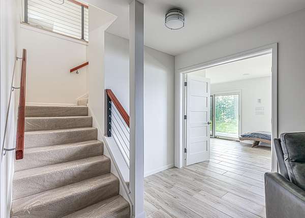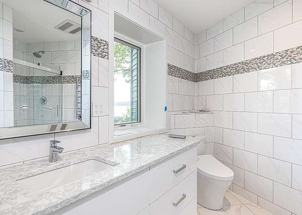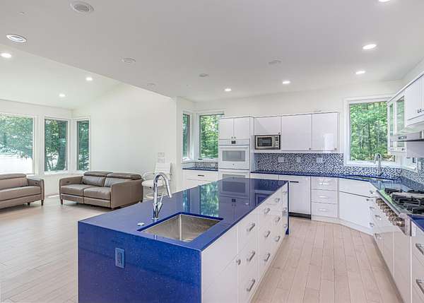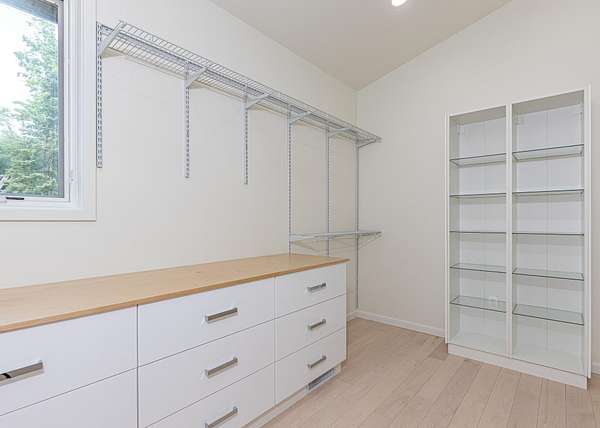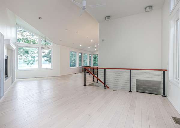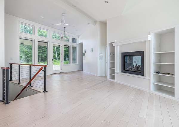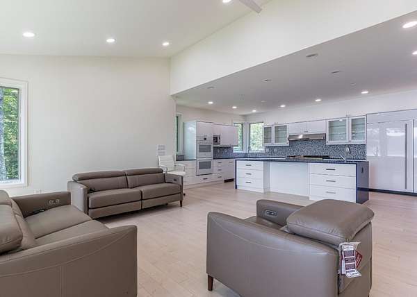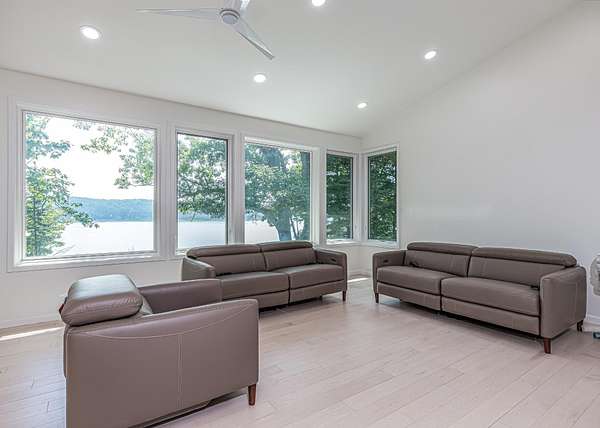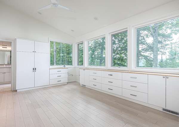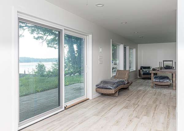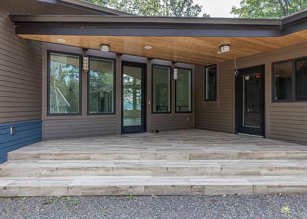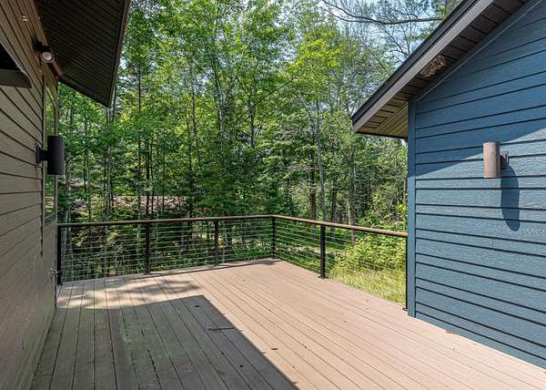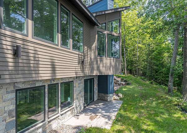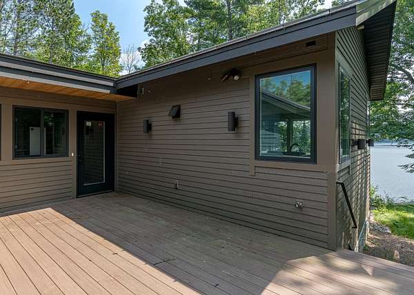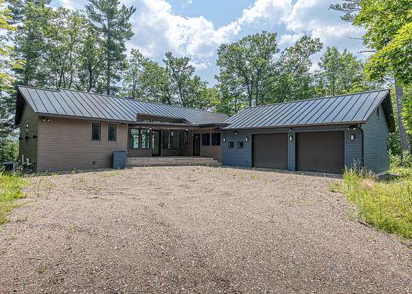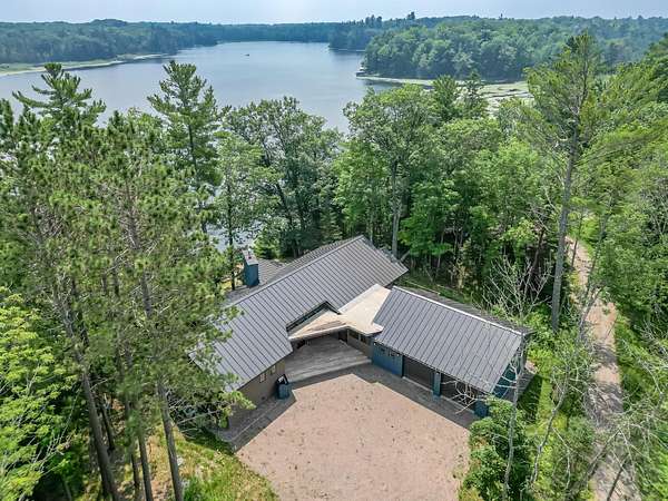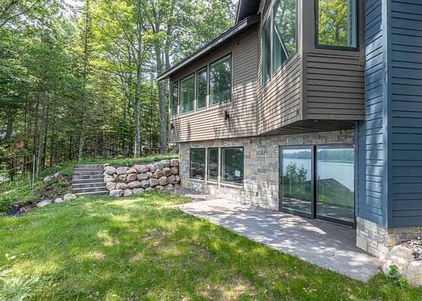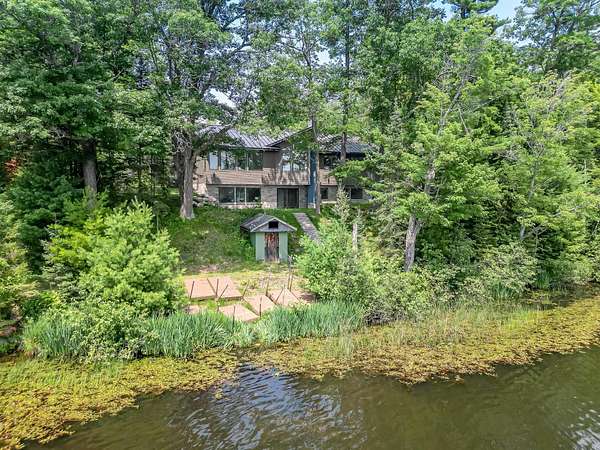 Built in 2018 and never occupied, this high-end contemporary smart home offers sleek design, luxurious finishes, and panoramic lake views. Walls of windows in the main living area and primary suite flood the space with natural light. The chef's kitchen features a massive island, quartz countertops, Sub-Zero fridge and freezer, Thor gas cooktop, double ovens, and a 6'x9' pantry. Off the attached garage is a mudroom with extra storage. The main-level primary suite includes built-ins, two walk-in closets, and a spa-like bath. The walkout lower level has two large family rooms, a wet bar, second suite, third bedroom/office, and a 20x11 bonus room. A detached 28x28 heated garage includes a loft and solar panels. A propane-powered whole-house generator provides backup power. Located on quiet West Horsehead Lake between Minocqua and Rhinelander, this peaceful, private retreat is move-in ready and built for modern lake life.