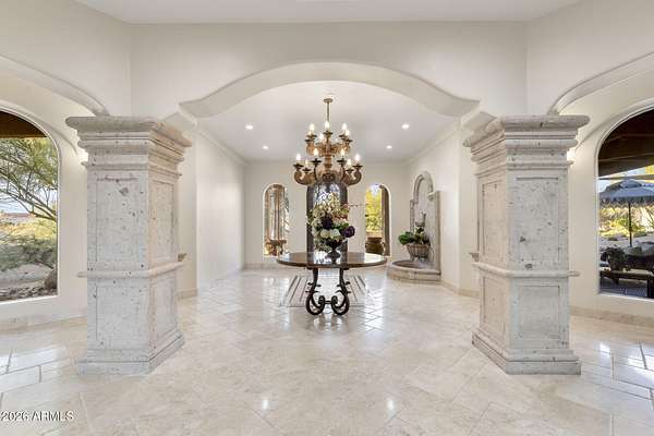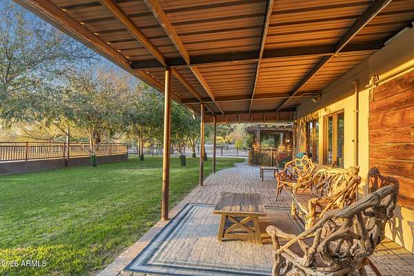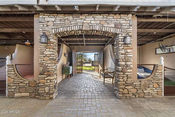 This is your opportunity to own nearly 8 acres of premier horse property while still enjoying the convenience of North Scottsdale. A private, freshly paved driveway leads you to a luxurious 4,402 sq ft home featuring a new roof, fresh interior paint, two primary suites, and a resort-style backyard ideal for entertaining. The impressive gated courtyard showcases lush mature vegetation, two large wrought-iron doors, and access to the spacious four car garage with plenty of built in storage. Equestrian amenities include a fully covered barn with six stalls, wash racks, fly system, misters, and an on-site washer and dryer, along with two riding arenas, living quarters, and an entertainment room. A rare blend of privacy, luxury, and equestrian living in North Scottsdale.
