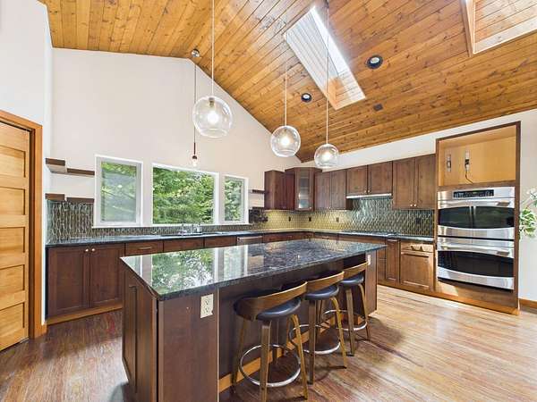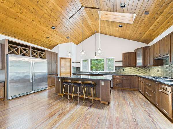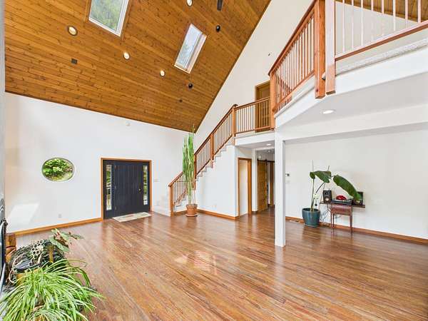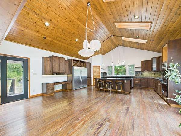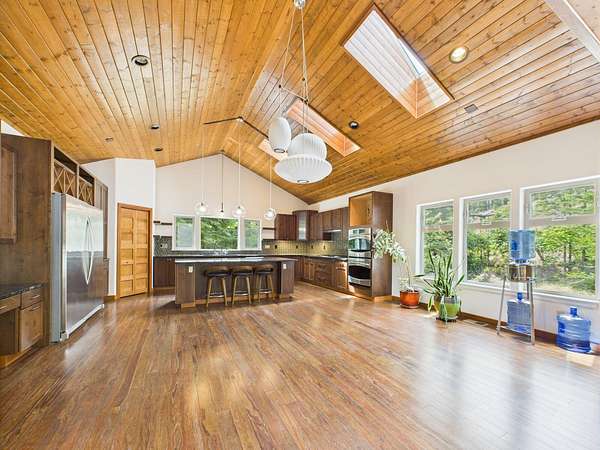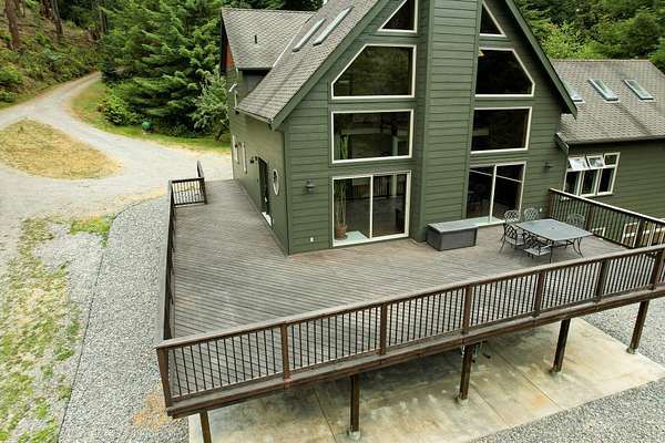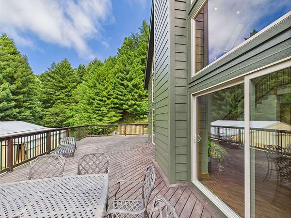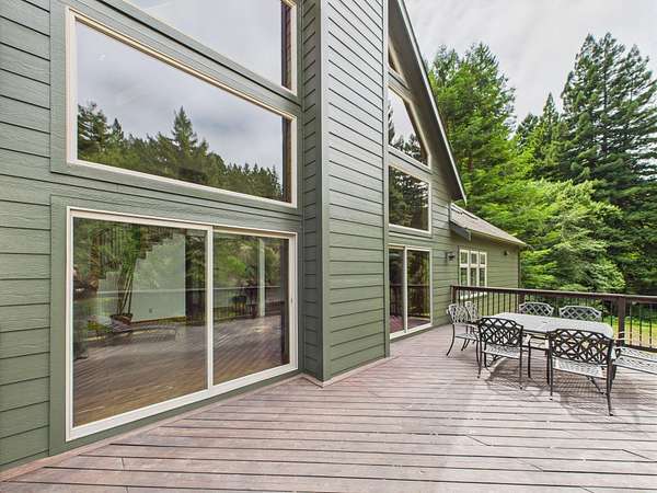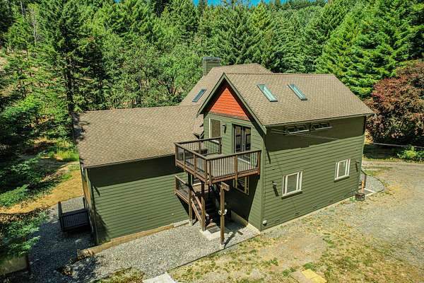 Tucked at the end of a private road and surrounded by majestic redwood trees, your custom Blue Lake retreat offers an idyllic balance of ''Sunshine and Sea Air.'' Set on expansive, secluded acreage, this home invites you into a private world of natural beauty-brought inside by walls of windows and soaring vaulted ceilings. Nature meets luxury in this home that features a sleek fireplace, a gourmet kitchen, and an large, sun-drenched wraparound deck. Upstairs, a loft leads into a beautifully appointed primary suite featuring a spa-like bath and private deck. Downstairs, the daylight basement offers two generously sized rooms with endless potential and access to a covered patio-ideal for a den, studio, or additional living space. Outside, a 3,600ft2 shop/garage with 100-amp service offers room for hobbies, vehicles, or storage. There are multiple level areas to support RVs, equipment, or future development, and the property has recently undergone defensible space clearing. A seasonal creek meanders through the property, adding tranquil charm and enhancing the sense of total privacy. Blue Lake enjoys a mild, marine-influenced Northern California climate. During the Summer you will be treated warmer days and nights than can be found just a few miles towards the coast and winters are mild. Average summer highs are in the high 60s to low 70s degrees F, rarely exceeding 80 degrees F. Winter highs average in the low 50s degrees F, with lows that generally stay above 40 degrees F. This makes for an endlessly comfortable, year-round living experience perfect for easy indoor-outdoor flow and hosting gatherings under the redwoods. Privacy without isolation, this home strikes the ideal balance nestled in the forest yet centrally positioned for everyday convenience and outdoor adventure. You're just minutes from: *Pristine coastal beaches *Enchanting redwood hikes *Scenic river recreation *Charming nearby towns offering restaurants, shops, Cal Poly Humboldt University, and amenities you won't want to nor need to drive far to enjoy! This home is served by Blue Lake Elementary School, which offers TK/Kindergarten through 8th grade classes, and it falls within the desirable Arcata High School District. Discover a home that nurtures peace, inspires daily living, and invites you to explore the best of Humboldt's natural and cultural offerings.
