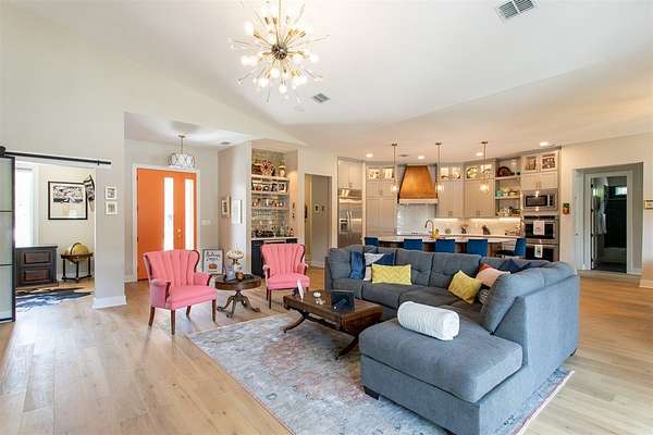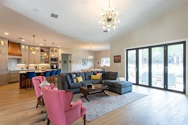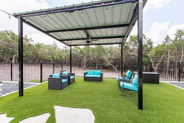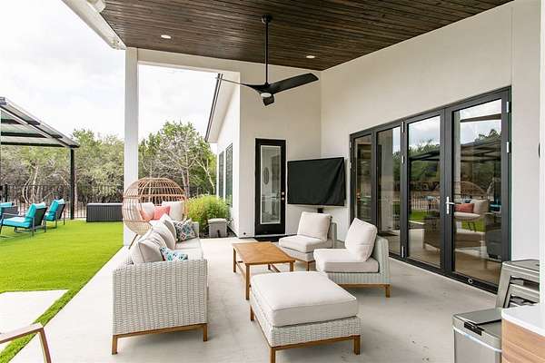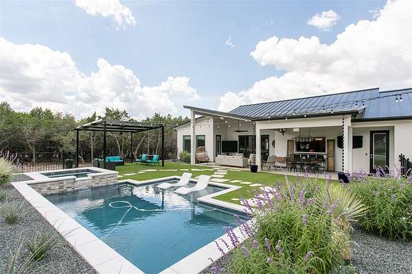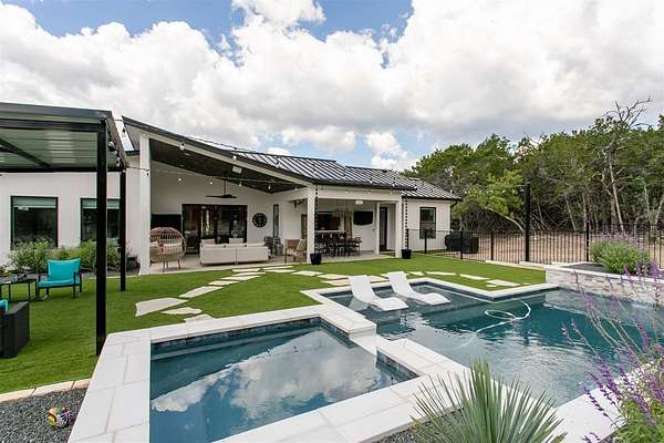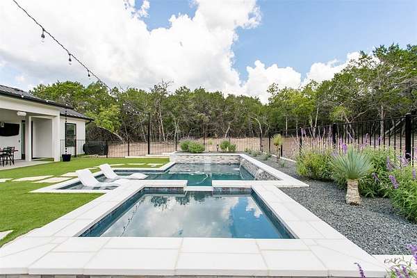 Luxurious Contemporary Meets Hill Country, Located In The Gated Community of The Heights, This Custom Build Is The Builders Personal Home. Curb Appeal Is Beautiful As You Drive down the long drive To This Home that sits back on lot for your privacy. As You Enter The Front Door, You Will See the Magnificent Views From The Front Door To The Spacious Covered Back Porch (sitting area 20' x 16') & Dining Area (15' x 10') & The Pool & Spa With No Maintenance Turf Grass. Also there is a 14' x 14' Covered Pergola. Enjoy the privacy of this 3.5 Acre Wooded Lot. Kitchen Has Stainless Appl, Huge Pantry, Beautiful Quartz Counters, A Pass Thru Window To The Outdoor Dining Area, Huge Island To Accommodate Bar Stools Looking Out To The Great Room and Pool Area. The Great Room Boast A beautiful Fireplace, Folding Accordion Glass Doors Go To The Porch/Pool Area, Wine Fridge & Built-In Bar. Master Bathroom Boast a Beautiful Soaking Tub And Huge Walk-In Shower, Very Large Walk-In Closets With Built-Ins. Also Two Generous Size Guest Bedrooms Plus A Bonus Room Above The Garage That Could Be Used As Another Media Room, Study, Game Room. Additional carpeted & Insulated Storage Closet Off The Bonus Room.
