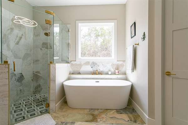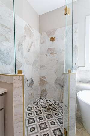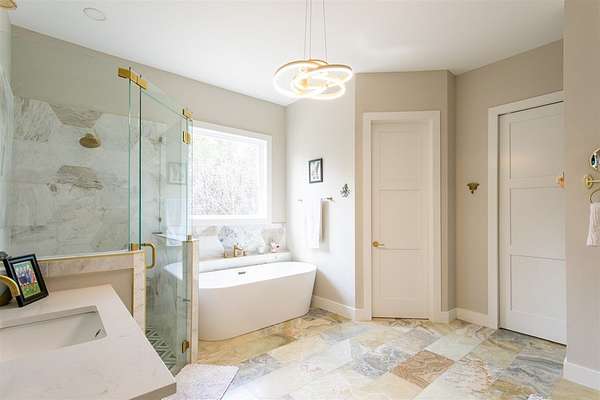 - High Ceilings, Shower Stall, Shower/Bath Combo, Stairs/Steps, Walk-In Closet(s)