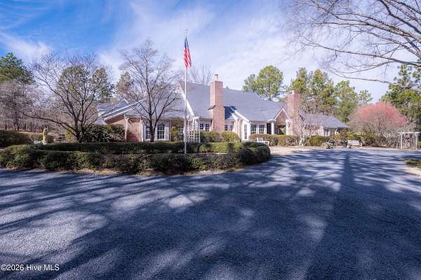 Elegant Traditional 4,900 SF home on 5.77 acres at the popular CCNC gated golf community in Pinehurst, NC comes with a transferable Charter Pinehurst CC membership. Spacious and private with formal and informal living areas, vaulted and trayed ceilings, oversized 2-car garage with sink, epoxy floor, and storage galore. Four bedrooms, 5.5 baths, 2 fireplaces (wood burning and gas logs), wet bar, built-ins, his and her baths, and dressing rooms. Beautifully landscaped grounds with an irrigation well, circular drive, and expansive slate patio. Sunny Carolina room, guest suite on the second floor, study with fireplace, breakfast room, 2 jetted tubs, and a corner soaking tub with double sinks in the guest suite. Many recent updates include 26 Pella replacement windows in 2025, a newer front door, and a synthetic slate roof with a 50-year warranty. HVAC's under service agreement with Four Seasons, 2 water heaters, termite/pest/mosquito warranty with BugOut, Americas Preferred Home Warranty, and more. Please limit showings to qualified buyers. Buyer must be a member of CCNC before closing. The initiation fee will increase to $75,000 in April 2026.