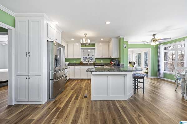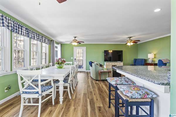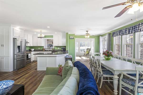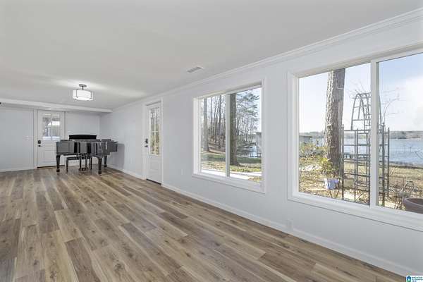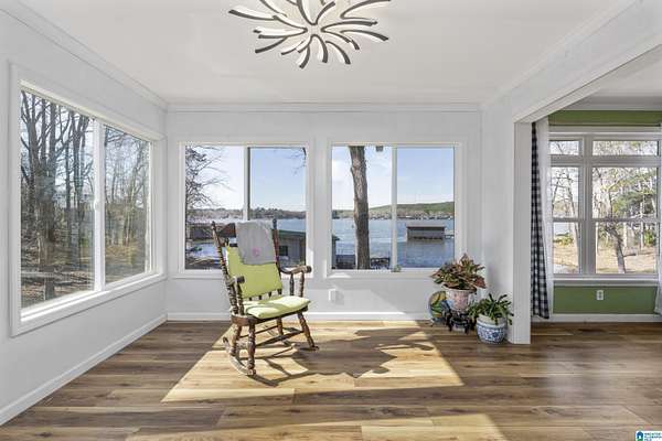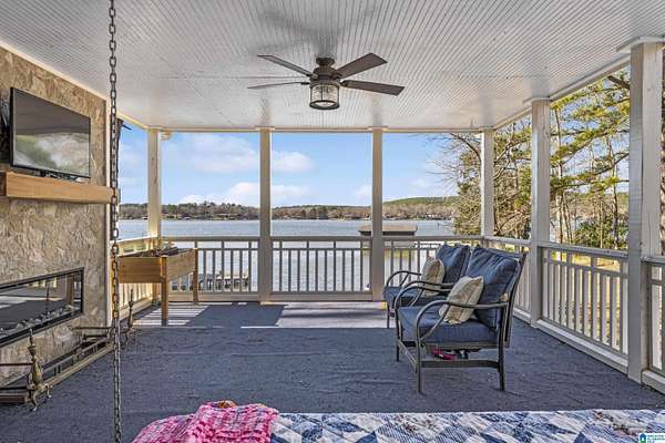 NEW TO MARKET! Main Channel Estate on Lay Lake- extensively transformed within the last four years. Over 300' +/- Shoreline & 2500+/- Sq ft, 1,000+ sq. ft. expansion, headlined by a 16’x23’ Master Suite featuring a custom Walk-in closet and a soaring two-story Porch with a modern Fireplace and hanging swing bed. The interior shines with 4’ wide solid hickory staircases, hickory LVT flooring, and a Gourmet open Kitchen with granite countertops and a Butler pantry. Thoughtful touches include a Sunroom with granite workspace, nautical-themed Guest Suite with pool access, specialized greenroom for winter plant storage. Built for longevity with Hardy Board siding, Metal Roof, and an upgraded 200amp electrical panel with a generator connection. Outdoor living is like a true Resort, offering a 14,000-gallon Saltwater Pool, Firepit, and professional drainage engineering that ensures a Pristine Lot. A enclosed Legacy Boathouse, additional concrete even for parking at the pool.
