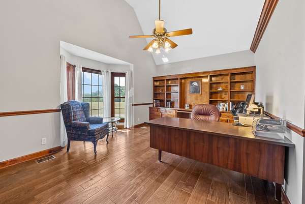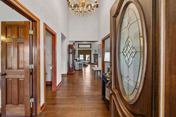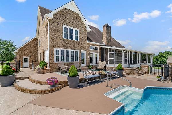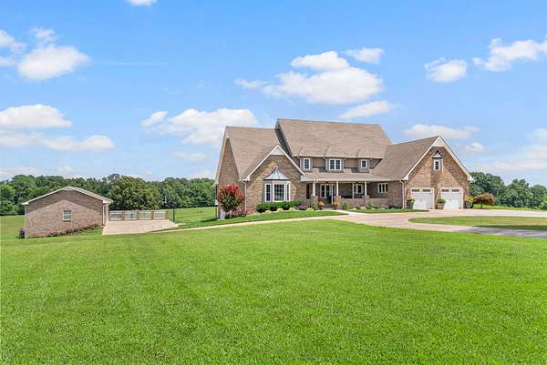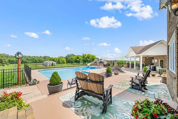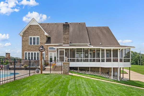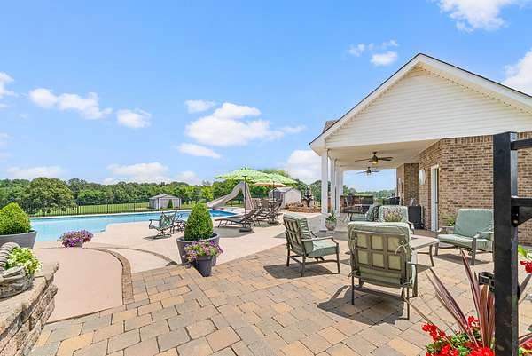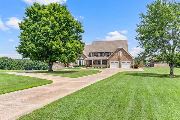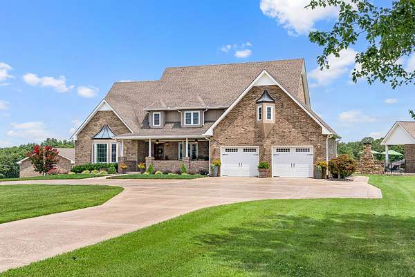 Welcome to 845 McClure Road, a true country estate on 15 acres of gently rolling pasture. This all-brick, two-story home offers nearly 3,900 sq. ft. plus a 1,550 sq. ft. finished basement. A screened deck overlooks the property, while multiple garages provide abundant storage and parking - 7 bays in total. Inside, a grand foyer opens to a main-level office with custom built-ins, a remodeled kitchen with walk-in pantry and island, and a dining room that flows into a bright sunroom. You will notice the main living room features transom windows, a gas fireplace w/ stone hearth and gorgeous wood trim work that flows throughout the entire home. The main-level primary suite includes covered deck access, a jetted tub, double vanity, and walk-in closet. Upstairs are 3 bedrooms, a Jack & Jill bath, and bonus room. The finished basement adds a full bath, wet bar, and storage rooms perfect for storm shelter use. Outdoor living features a pool house with kitchen and bath, in-ground L-shaped pool with slide, fireplace, and expansive patio. Enjoy an all brick detached garage with 3 bays and walk out door just steps from the house. A 45x25 utility building with bays, water, and electricity adds versatility and extra room for the outdoor enthusiast. There is also a lean to w/ tack room, bring your animals! Convenient to I-24, Fort Campbell, and less than an hour from Nashville. Enjoy no city taxes while living your dream in this country home place- also eligible for Greenbelt tax savings!