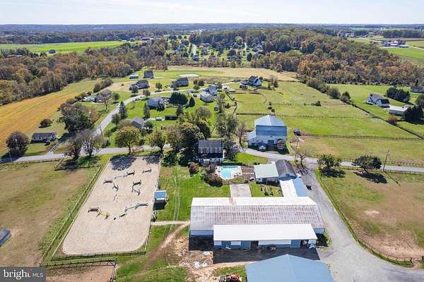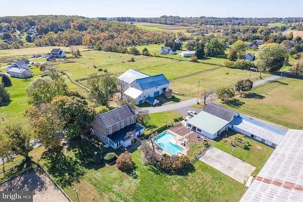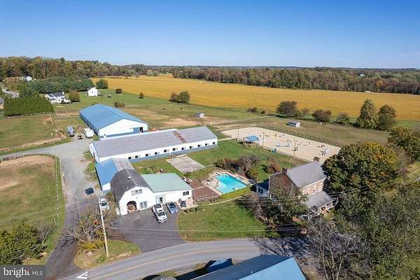 Welcome to Brownstone Farm, a stunning equestrian training center and historic residence set on 12.7 beautifully maintained acres. Originally constructed circa 1772, this solid brick three-story farmhouse blends timeless architecture with modern updates and offers an exceptional opportunity for both gracious country living and professional equestrian pursuits.The main residence invites you in with a wide 10-foot front porch and a grand entry hall flanked by elegant parlors. The remodeled kitchen (2018) features custom cabinetry with a hand-painted finish, soapstone countertops, a farmhouse sink, subway tile backsplash, stainless steel appliances, and a butcher-block center island with prep sink. A cozy breakfast area with a wall of windows and exposed brick adds warmth and light. Adjacent, the formal dining room boasts built-in china cabinets and a charming corner wood-burning fireplace. Additional living spaces include a great room with arched openings, hardwood floors, and a fireplace plus a formal parlor ideal for entertaining with another fireplace.The first floor also offers a convenient laundry room with utility sink and a full bath featuring a soapstone vanity. Upstairs, the second floor hosts four generously sized bedrooms and a full bath with clawfoot tub. The third floor provides THREE additional bedrooms with adjoining sitting or sewing rooms / flexible spaces that can serve as offices, craft rooms, or extra storage.Step outside to your own private retreat. The L-shaped Anthony Sylvan in-ground pool (8' deep) with adjoining hot tub is surrounded by a 25' x 15' patio, an island-themed pool house, fire pit area, and a sports court with basketball hoop. Raised flower beds and mature landscaping complete this peaceful setting.A two bedroom loft apartment with downstairs studio offers full amenities and is currently leased & perfect for generating supplemental income or accommodating guests.Equestrians will appreciate the exceptional facilities:Main Barn (built 2009): 35 stalls with windows, two tack rooms, three wash stalls (2 heated) with hot/cold water, three tack-up stalls, feed room, hay and straw storage, heated office, heated bathroom, and laundry.Second Barn: Seven additional stalls, wash stall with hot/cold water, tack and feed rooms, blanket storage & machine storage bays. Indoor Riding Arena (built 2010): 80' x 200', sand footing, LED lighting, heated viewing room, and spectator seating.Outdoor Ring (built 2020): 100' x 240', excellent base with sand footing, observation deck with electric and ceiling fan.Fenced paddocks and open pasture complete the setup for a working equestrian facility. Hacking path around the perimeter of the property.Brownstone Farm is as functional as it is picturesque, offering an established setting for lessons, training, and equestrian shows with proven cash flow potential. Whether you're seeking a turnkey equestrian operation, a country retreat, or a blend of both'this remarkable property delivers history, character, and opportunity in equal measure.