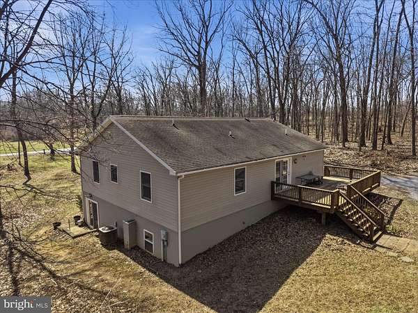 Nestled on three partly wooded and unrestricted acres, this single-level retreat offers privacy, comfort, and beautiful natural surroundings. This residence is centrally located just minutes from local amenties and the main Rt. 9 thoroughfare -- making the commute to either Maryland or Virginia a breeze. The large front yard provides a view of adjacent farmland and is a great place to watch the abundance of wildlife in the area. Upon entering the home, you're welcomed by gleaming engineered hardwood floors that flow throughout most of the main level. French doors fill the spacious living room with natural light and open onto a large deck that overlooks the peaceful backyard. The dining room features a bright bay window, creating a warm and inviting space for meals. The well-sized kitchen connects to a convenient laundry/mud room, which also includes a separate side entrance to the deck. Down the hall, you'll find three good sized bedrooms, including a primary suite with a deep soaking tub, ideal for unwinding after a long day. The full walk-out basement is unfinished and spans the entire footprint of the home, offering endless possibilities for additional living space, a workshop, hobby area, office, or storage. Multiple windows bring natural light into the lower level. Additional features include a new well pump, water filtration system, active radon mitigation system, and 2018 HVAC system. Don't miss this rare opportunity for single-level living on 3 private acres with no HOA restrictions in Jefferson County!