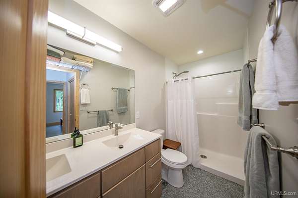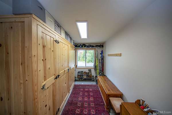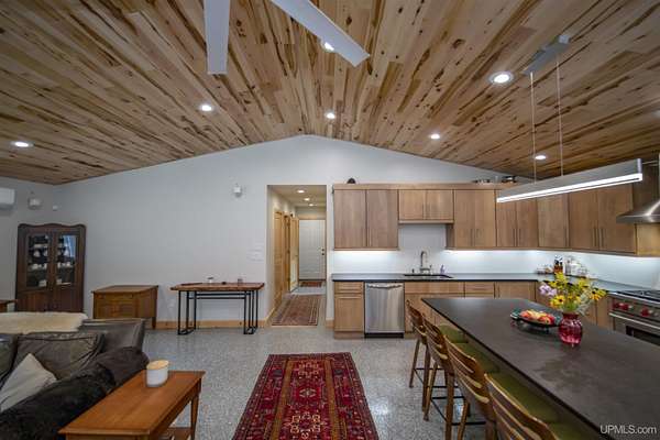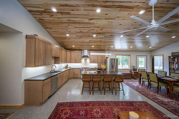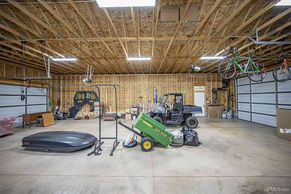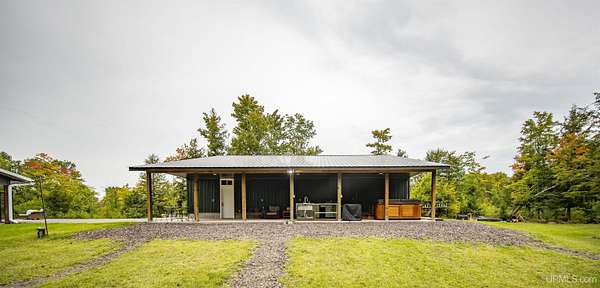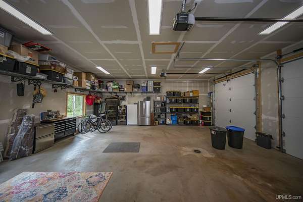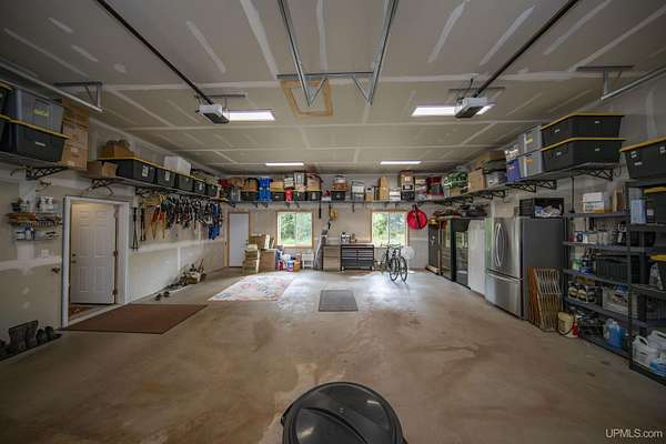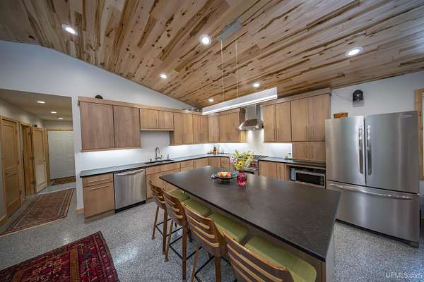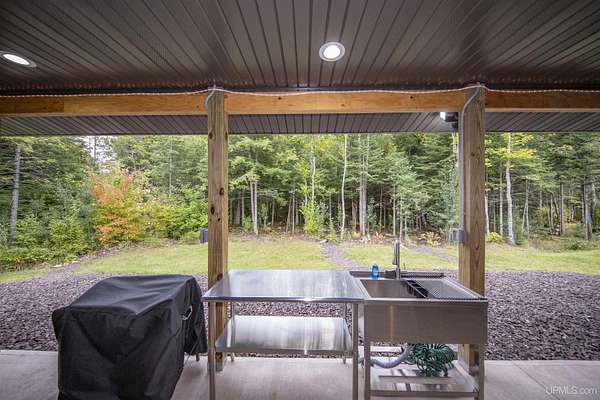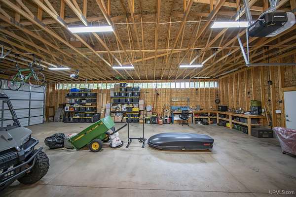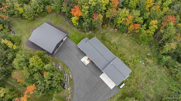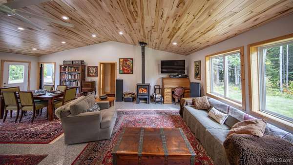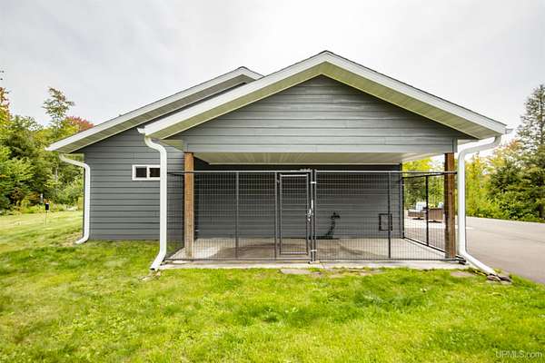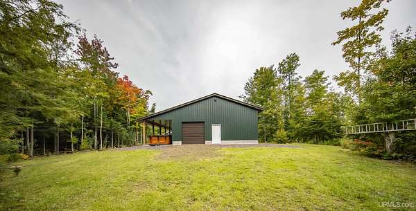 Discover a rare blend of luxury, privacy, and outdoor adventure on this remarkable 90-acre estate with direct access to the ABR Trails Foundation network. Enjoy over 4 miles of groomed XC ski trails on your own property right from your doorstep, along with snowshoeing, ATV routes, and nearby access to the WI/MI snowmobile trail system just 1.5 miles away. Whether you're an outdoor enthusiast or seeking a peaceful escape, this property offers a lifestyle few can match! Completed in 2020, the 1,620 sq ft custom-built home was designed for year-round comfort, efficiency, and easy living. Premium finishes include hydronic in-floor heat, commercial-grade epoxy (glow in the dark) flooring, Andersen windows, LP SmartSide siding, and R-60 attic insulation. The open-concept Great Room features locally milled T&G wood ceilings, expansive windows that flood the space with light, and pre-wired surround sound inside and out creating a perfect gathering space after a day on the trails. The chef's kitchen is a showstopper with granite countertops, a center island, high-end appliances including a Wolf gas range and commercial hood, under-cabinet lighting, and custom storage solutions throughout. A spacious mechanical/laundry room, custom cedar-lined closet, and solid wood interior doors add both function and warmth. The attached oversized heated garage offers 928 sq ft of additional space (built to be an expansion option if you desire more square footage) , 10' doors, and separate heat control. A second outbuilding (1,400 sq ft, built in 2022) features large overhead doors, 220V power, recessed lighting, and a covered lean-to perfect for an outdoor kitchen, storage, or workshop. For pet lovers, the home includes a dedicated dog room with durable finishes, sink, and a 10x20 covered concrete dog run. Other notable features include a blacktop driveway (2022), Pacific Energy wood stove, Carrier mini split (2023), and high-speed internet service. Appliances including the Wolf range, refrigerator, dishwasher, microwave, LG washer/dryer, and a wall-mounted TV are all included. This one-of-a-kind property offers everything from adventure-ready terrain to high-end comfort, the perfect blend of rugged and refined. Whether you are looking for a private retreat, a basecamp for every season, or your forever home, this is Northwoods living at its best.