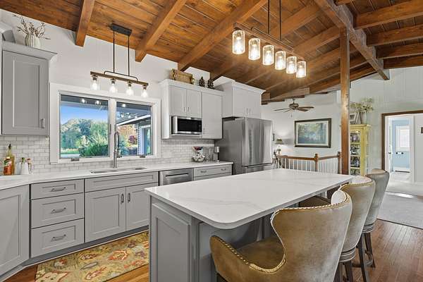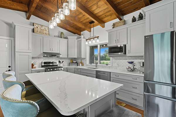 Located just outside the town of Lakeview and within close proximity to Tamarack Lake, this beautifully updated ranch-style home sits on over two acres of gently rolling property, offering both privacy and charm. Inside you'll find soaring cathedral ceilings with exposed beams and a fully remodeled kitchen featuring quartz countertops, a tile backsplash, soft-close cabinetry, a spacious island, and major appliances included. A generous dining area with a cozy gas fireplace and sliding glass doors opens to the upper trex deck, while the front-facing living room is filled with natural light. The main level also includes a serene primary bedroom with a large walk-in closet and convenient laundry area, plus an additional bedroom and beautifully updated full bath with a tile walk-in shower, with one-and-a-half bathrooms total on this level. Additional highlights include: