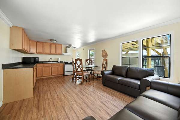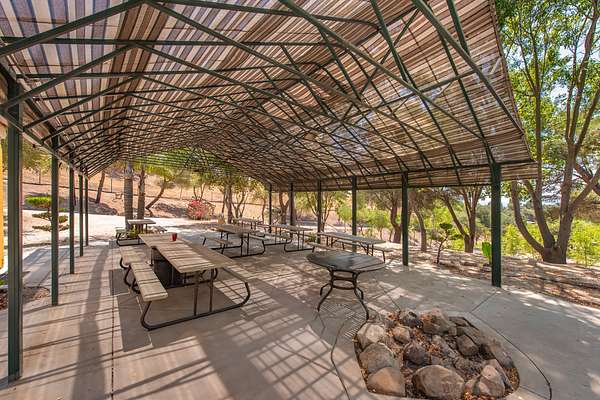 Entertainment & Living Areas: Tree lined entry leading to a large covered patio area with waterfall feature surrounded by shade trees. Large BBQ serving area with electrical outlets. Large shade trees throughout the property. Two-bedroom, one bath trailer included - creating a perfect guest retreat.