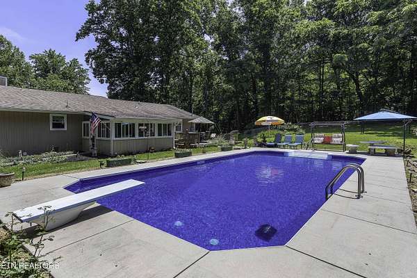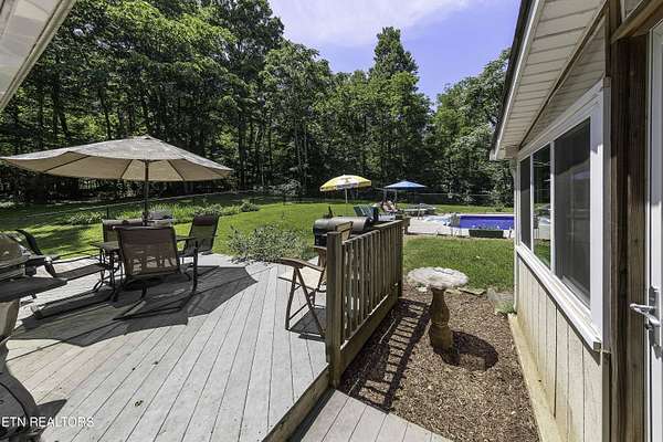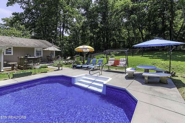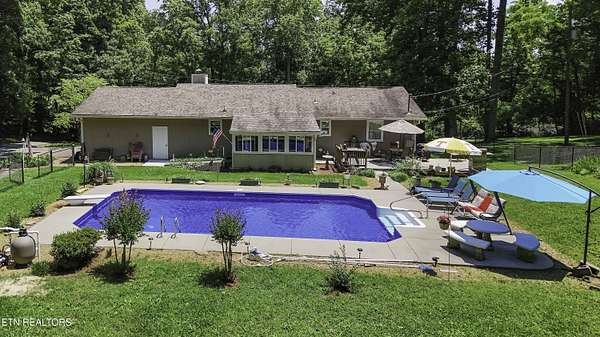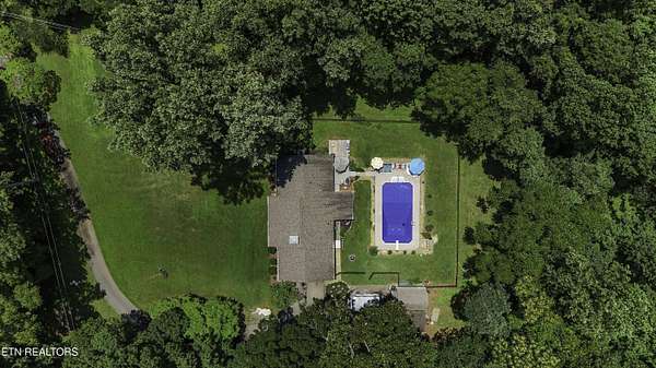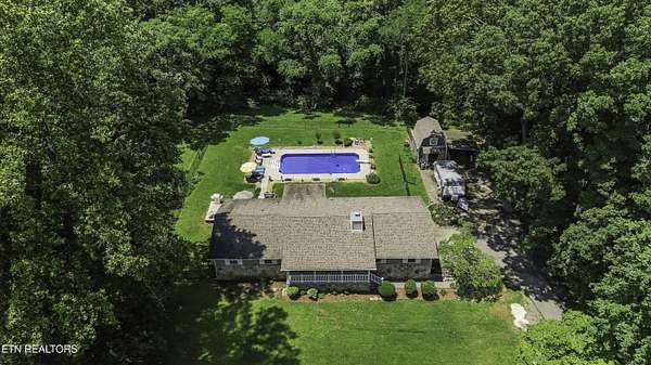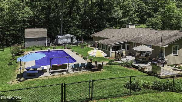 Est $3,194/mo- A Little Slice of Paradise in the Heart of Halls! Tucked away on nearly 8 private acres, this secluded sanctuary offers the best of peaceful country living just minutes from town. At the end of a paved 1,000-foot driveway sits a charming ranch-style home with a welcoming covered front porch. Inside you'll find 3 bedrooms, 2 baths, a spacious den/rec room, with an attached office -- perfect for working from home. Enjoy quiet mornings in the sunroom overlooking a flat, fenced backyard and a crystal-clear pool with a new liner. The outdoor space is ideal for entertaining, with a large deck, grilling area, and plenty of room to lounge poolside. Lastly, a storage shed with an attached lean-to for extra storage or workshop space along with large parking pad. Wildlife is abundant, and the surrounding trees provide the ultimate privacy. Also included is a separate double-wide home with its own water and septic system -- perfect for guests, rental income, or multi-generational living. The property consists of two parcels (3.8 and 3.69 acres) being sold together. A rare find offering space, serenity, and endless potential!
