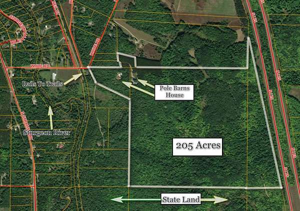 What an exceptional Northern Michigan retreat blends refined comforts and endless outdoor recreation. Rolling hills, mature hardwoods, and open skylines surround the property, offering approximately 200 feet of elevation change and 205 acres with picturesque vantage points. Established trail systems wind through the land for ATV riding, hiking, and peaceful exploration, while strategically placed blinds support a premier hunting experience. A high-quality barndominium-style outbuilding features a full kitchen and expansive storage, ideal for hosting, gear, and recreational equipment, complemented by a second building for tools and toys. Mostly wooded with open areas for customization, the property is designed for year-round enjoyment. Two rooms are down to studs, let your imagination run!