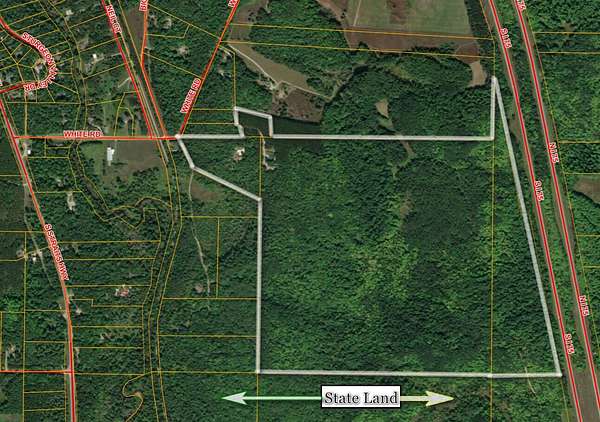 S. Straits Hwy to White Road (South Entrance) follow approx .6 miles to black gate on right.