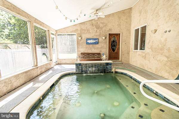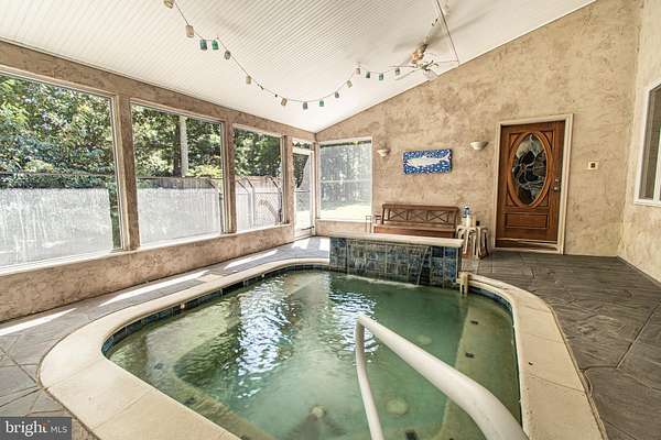 Nestled on a beautiful 2 + acre lot, this exquisite contemporary residence offers a harmonious blend of luxury and comfort. This is an artists and art lovers dream house. Built in 2004, the home showcases stunning stone and stucco construction, exuding timeless elegance while providing modern amenities. Step inside to discover an expansive open floor plan that invites natural light to dance across the beautifully designed interiors. The house was built with 9 ft. - 18 ft. ceilings, offering an abundance of wall space for displays. There are windows in many places to let in the light at different times of the day, changing mood and focus. The gourmet kitchen is a chef's dream, featuring a spacious island with sink and seating, a 4 burner gas cooktop with grill and downdraft exhaust system, an under counter oven and built in trashcompacter. The walk in pantry ensures ample storage for all your culinary needs. The kitchen opens to the airy living room with two separate seating areas. Also off the kitchen is the dining room overlooking the serene backyard. Retreat to the primary suite, where relaxation awaits. The en-suite bathroom boasts a luxurious soaking tub with a rain shower head, creating a spa-like atmosphere for unwinding after a long day. The spacious primary bedroom suite is thoughtfully designed with a sitting area, exercise area, large walk-in closet and direct access to the pool/spa area. The main floor offers an additional spacious private bedroom suite with large walk-in closet. Additional interior highlights include built-ins for added storage, recessed lighting that enhances the ambiance, and a convenient main floor laundry room with sink. The home also features an office plus a versatile studio space with external access, perfect for creative pursuits. The 3rd and 4th bedrooms with full bath and comfortable sitting room create their own sanctuary with separate entrance on the second floor over the garage, with a new HVAC system. From there you also access the walk in attic. Step outside to your private oasis, where a heated in-ground pool/spa with waterfall awaits. The serene backyard backs to lush trees, providing a tranquil setting for outdoor gatherings, and the house offers also a protected patio and a stone garden to enjoy the peaceful surroundings. Parking is a breeze with both attached and detached oversize garages, accommodating multiple vehicles and providing additional storage options. The paved driveway ensures easy access and enhances the property's curb appeal. The Ingleton community has private water access for its homeowners to Hunting Creek and the nearby Miles River, which is just a few blocks away. Water enthusiasts will appreciate the opportunities for canoeing and kayaking right at their fingertips. This residence is not just a home; it's a lifestyle. Experience the perfect blend of luxury, comfort, and nature. Embrace the exclusive lifestyle that awaits you in this remarkable property, where every detail has been meticulously crafted for your enjoyment.