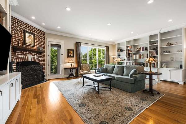 Finishes reflect a consistent commitment to quality: hickory hardwood floors, custom cabinetry, and quartzite countertops throughout. Four and a half baths. A private hot tub off the main-level primary suite.