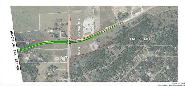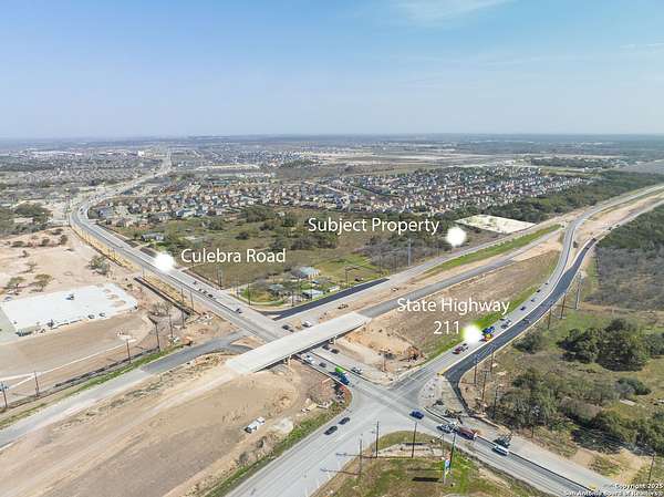 Est $13,196/mo1.5 acres off the New State Highway 211 just before FM 471 (Culebra Rd). The property has electric, water, and a septic. Fully fenced. See TXDOT Map and survey attached. This property is on the northside feeder road just past the exit off SH 211. (SH 211 is not completed at this time)