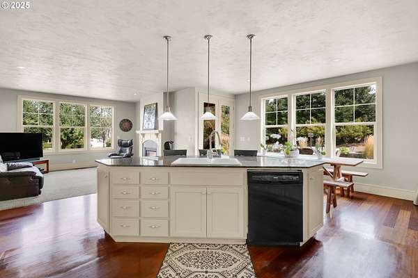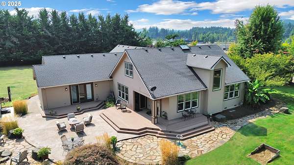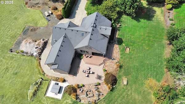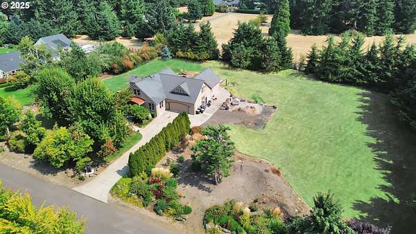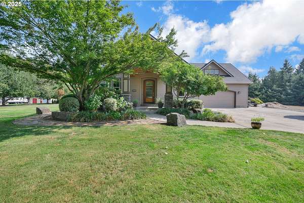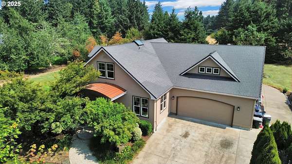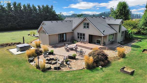 Discover your dream home on two acres near Eugene. Nestled on a private road, this stunning former tour home blends timeless craftsmanship with serene natural beauty. From the moment you step through the exquisite front door, your eyes are drawn to expansive windows framing tranquil views.The thoughtful floor plan centers around a spacious open-concept kitchen and family room. A granite eating bar, butler's pantry, and casual dining area create the perfect setting for both everyday living and entertaining. Step outside to enjoy your morning coffee by the two-sided glass fireplace, host summer barbecues on the expansive patio, or gather around one of the fire pits(gas and wood) with family and friends. Surrounded by trees, the backyard is a true extension of the indoor living space-ideal for relaxation, entertaining, and year-round enjoyment. There is plenty of room for your toys, with a large RV pad, as well as plenty of space to add outbuildings! The main-level primary suite offers a private retreat with an oversized walk-in shower and generous walk-in closet. Upstairs, you'll find two additional bedrooms, an office area, and a versatile bonus room that can serve as a large family room or a fourth bedroom.Located near Pleasant Hill's highly desirable schools, this exceptional property combines sophistication, functionality, and natural beauty. Whether you're seeking cozy evenings by the fire, lively gatherings, or peaceful mornings with wildlife, this home adapts effortlessly to your lifestyle. A rare find-don't miss the chance to make it yours.