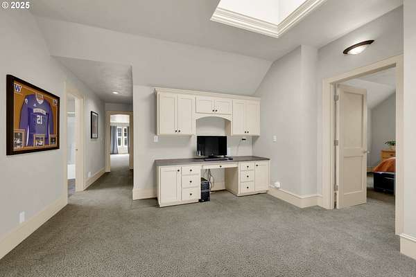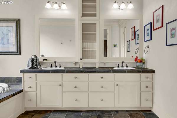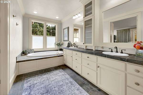 - Central Vacuum, Garage Door Opener, Hardwood Floors, High Ceilings, Jetted Tub, Laundry, Skylight, Slate Flooring, Tile Floor, Wood Floors