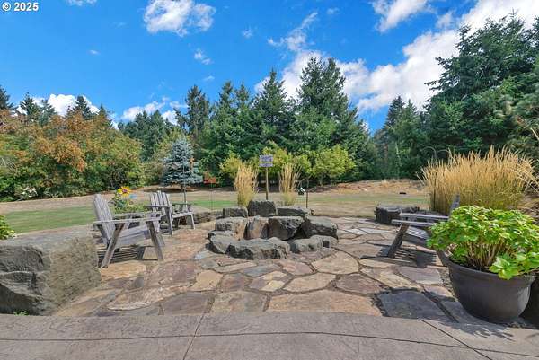 - Fire Pit, Garden, Gas Hookup, Outdoor Fireplace, Private Road, RV Parking, Sprinkler, Water Feature, Yard