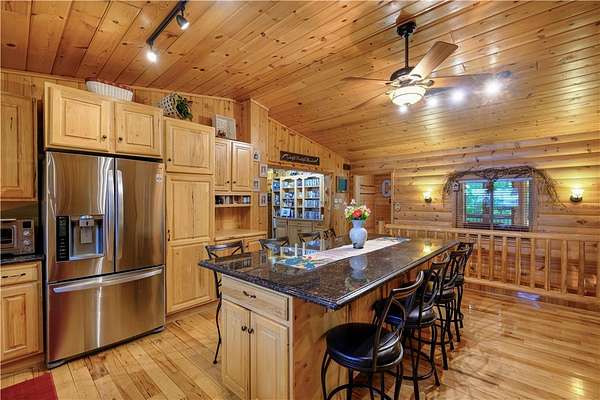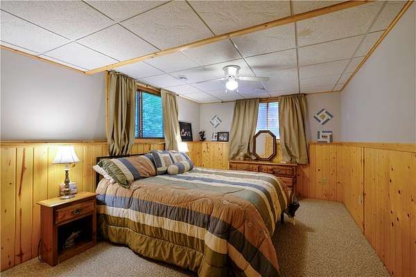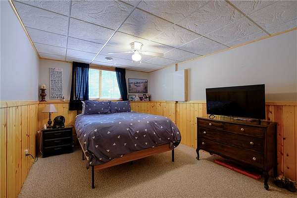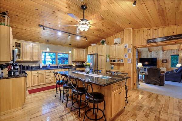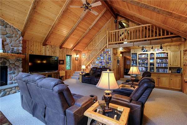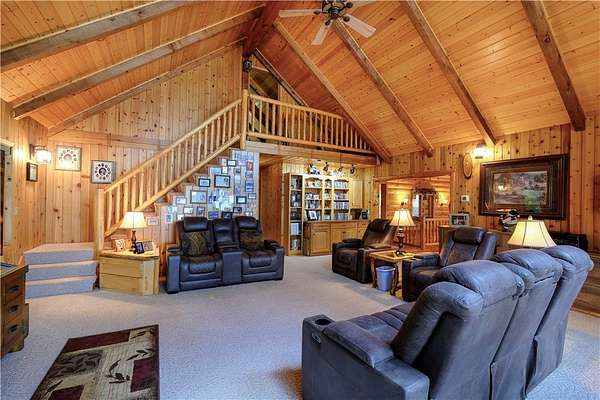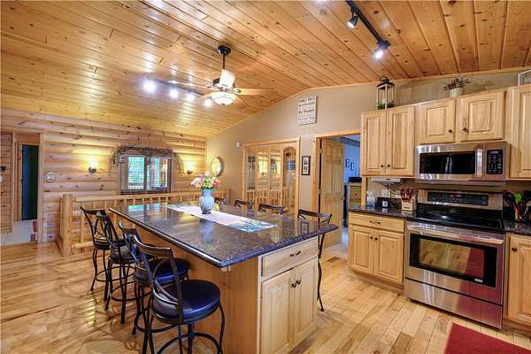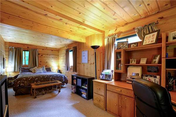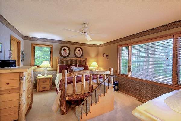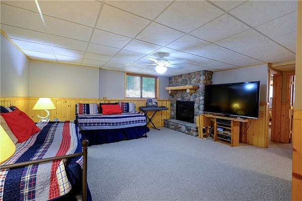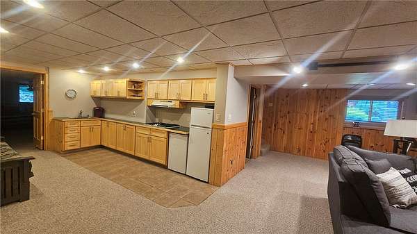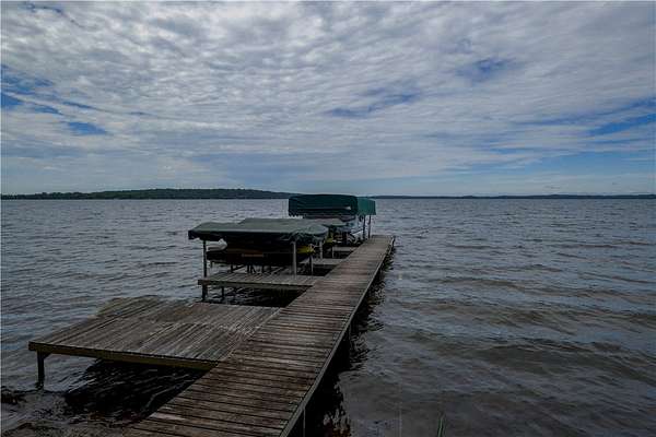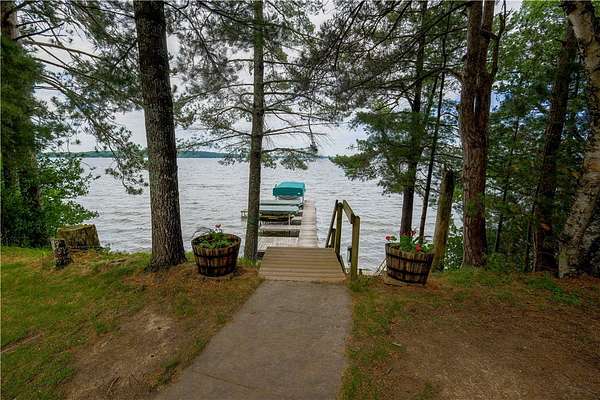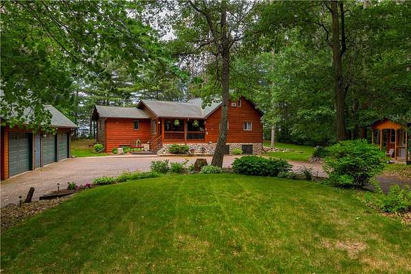 MOTIVATED SELLER: A piece of heaven on the crystal-clear shores of Grindstone Lake! This stunning 5-bedroom, 3-bath home sits on 4.84 acres with an adjoining 3.29-acre lot with a 40x60' All Steel Bldg. and own driveway! This property offers the perfect blend of comfort, space, and breathtaking natural beauty with the southern views and ability to see the sunrise and sunsets. Inside you'll find plenty of room for family and guests with a spacious living room, family room, and rec room, along with 3 fireplaces throughout the home for those cozy nights. The lower kitchenette adds convenience for entertaining. The landscaped yard leads to approximately 250' of private lake frontage complete with a dock ready for lake life fun. Bonus Features: Kids playhouse heated and A/C, 60x132' heated workshop with tool room, bar room, half bath, and office with a 12x72 lean-to on the north side for extra storage (3-heaters for maximum heating) 4-car detached garage w/ storage. This property has it all!