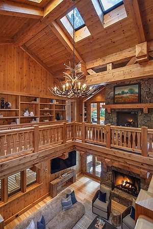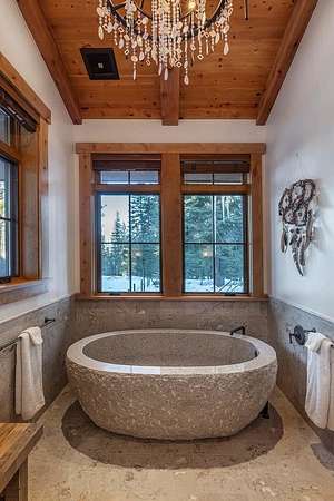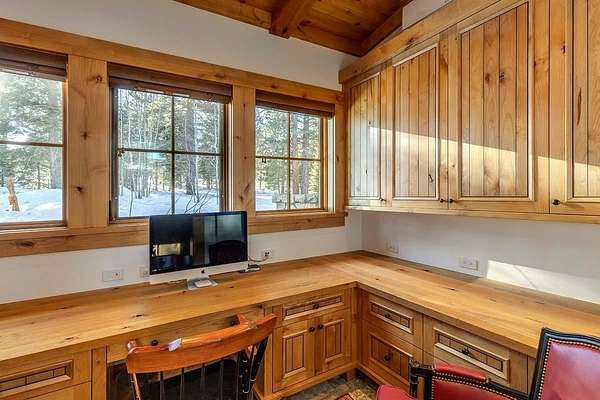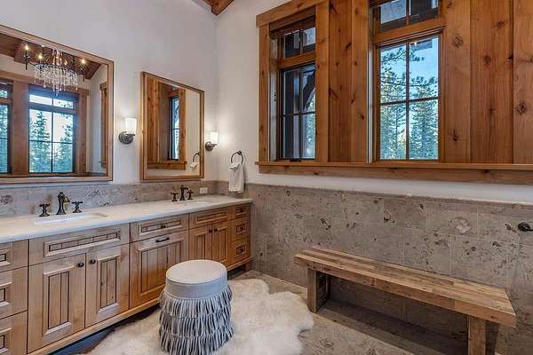 You've memorized the delicate pitches, breaks and rolls on that Tom Fazio designed green - the 4th - just steps away. You've studied it while settling into a coffee beside the outdoor fireplace on the upstairs deck. You've observed it from the firepit, outdoor dining room, and hot tub on the back patio, all enjoying a gallery view of the green and 5th fairway that's rivaled by few others. When winter arrives and the southern sun spills into this 6,421 square-foot Martis Camp home's living space, those fairway undulations transform nicely into sledding hills. Such are the lures one may consider should the concept of gazing at the bright, Tahoe lodge-like grandeur of this home ever grow old. There's a billiards loft, four fireplaces, and a terrace of vivid stone that wraps three-quarters of the way around the home and features heated/covered outdoor dining and stone benches encircling a large firepit that's ideal for storytelling. Inside, the kitchen with the long, bending counter commands views of the dining room with a wall of windows, and the great room with its wide, stone fireplace. Winter sun pours into this picture nearly all day long. There's a wet bar in the hallway across from the media room with its own granite fireplace, large screen tv, and access to the patio and hot tub. Nearby is a bedroom with its own terrace and the primary suite with its alluring bathtub and fireplace. Dominating the upstairs is an open four-sided walkway that gazes down to the great room, as well as billiards, seating areas, deck with fireplace, and several bedrooms with a variety of views, including those that overlook the sod and flowered roofs. A private, expansive guest quarters (or rec room/rumpus room) with kitchenette, bathroom, mini fridge, dishwasher and deck, is situated above the three-car garage. Within this 7-bed, 7.5-bath home are features like rustic European ash flooring, alder wood doors and trim, custom cabinets, and natural limestone slab bath countertops. There's Lutron home lighting, radiant heat with individual room control and handsome ridge line sky lighting. The exterior is stunning as well. Hand-hewn siding is redwood shiplap, light fixtures are custom ironwork, and the landscape is nothing short of superb.