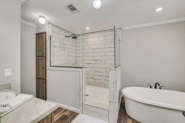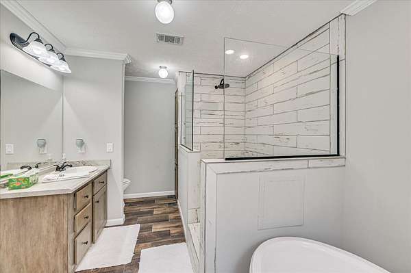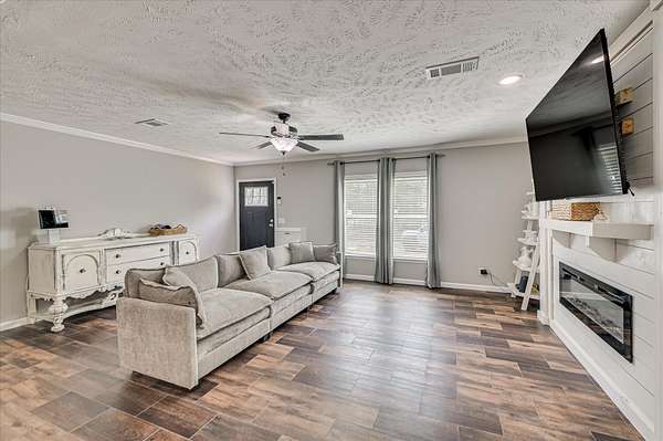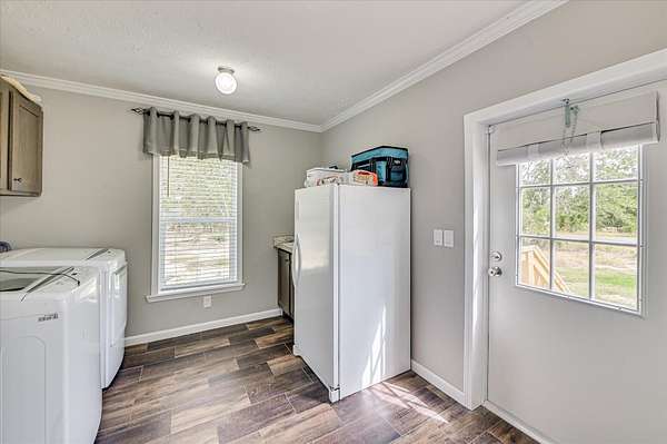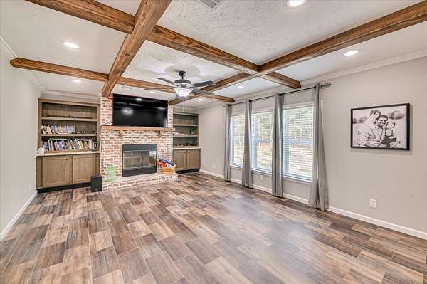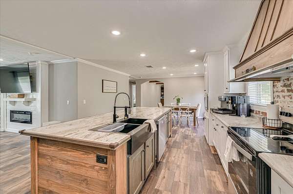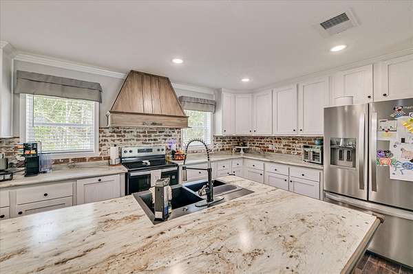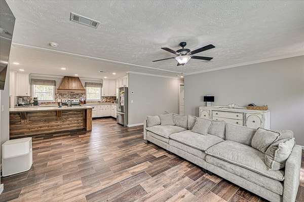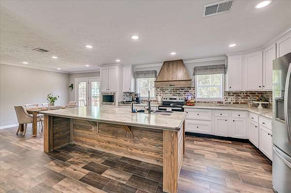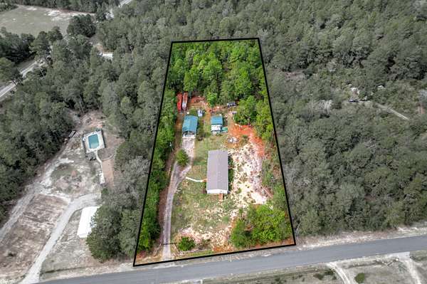 Welcome home to this fabulous, custom designed, new 4 bedroom, 2 bathroom retreat! Perfectly situated on 2.5 private, level acres! Offering a spacious and modern layout, this home features a dream kitchen and two separate living areas, providing the ideal setup for both relaxation and entertaining! The gorgeous kitchen is the heart of the home-complete with a fabulous oversized island, wood range hood, and plenty of cabinetry and counter space to inspire your inner chef! You'll love the beautiful LVP flooring throughout, offering both style and durability! The large den is a cozy and inviting space, highlighted by charming wood beams and a beautiful fireplace-perfect for gathering with family or enjoying a quiet evening in! The spacious owner's suite is a true oasis, showcasing a gorgeous modern bathroom with elegant finishes and thoughtful design! A spacious, separate laundry/mud room with a utility sink offering outdoor access adds extra convenience and functionality! Enjoy the peace of mind that comes with brand-new septic and well systems, as well as the practicality of RV storage and container storage units that remain with the property! A rare opportunity to enjoy modern living with country charm-don't miss your chance to make this beautiful new home yours!