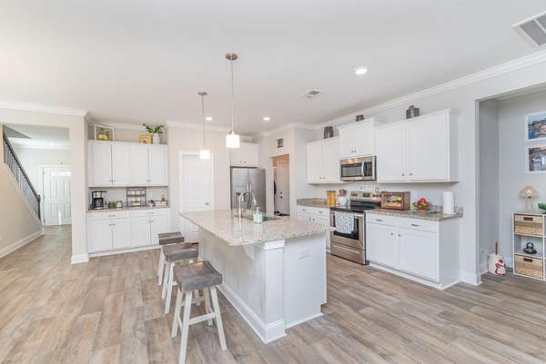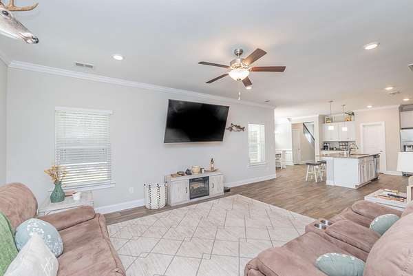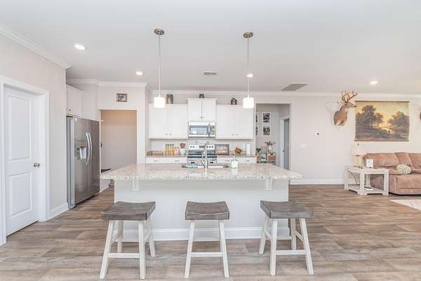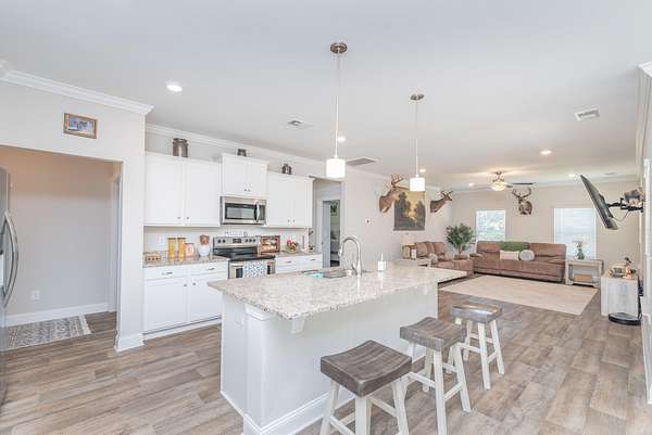 - Ceiling Fan(s), Eat-In Kitchen, Kitchen Island, Pantry, Primary Downstairs, Walk-In Closet(s)