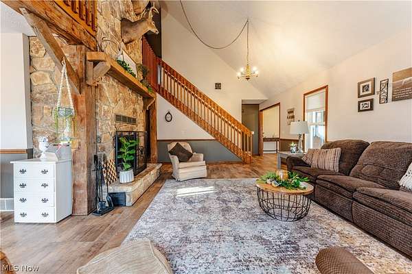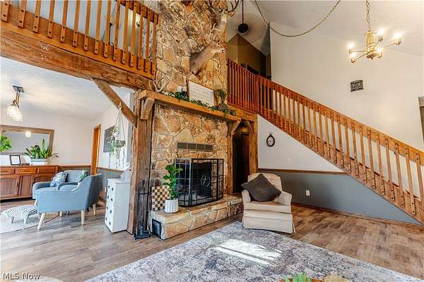 Pristine 5 Bedroom 3 Bathroom home on 7.3 acres located minutes away from Millersburg. The main floor of the home offers a spacious living room with vaulted ceilings and a stone fireplace. Attached one-car garage. Large kitchen and separate dining area with access to a screened-in porch. Two full bathrooms and two bedrooms, one being used as an office. Upstairs features two bedrooms, an open loft space, and a full bathroom. The finished basement has an open living area with stone fireplace, a kitchenette, laundry room, bedroom, utility room, storage, and a washroom with outdoor access. Relax outside on the large porch as well as out back on the concrete pad. The 58'x45' shop offers abundant space and versatility, is plumbed for in-floor heat, and is partially heated - making it ideal for a wide range of use. Don't miss out on a great opportunity to buy a well-maintained home and shop in an ideal and private location, join us at the open house or schedule a private showing today!