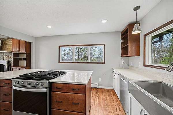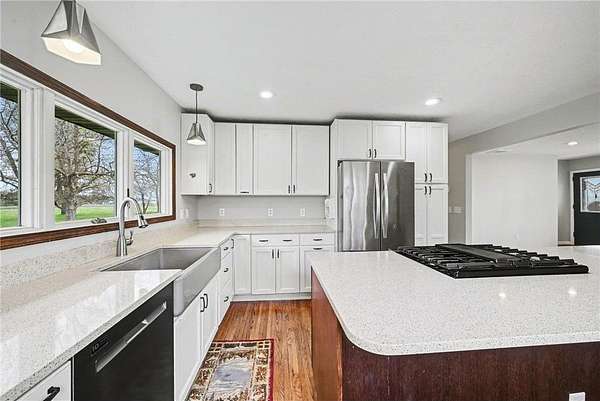 Welcome to a charming 10.70-acre hobby farm just west of Nerstrand, MN or northeast of Faribault, MN! This inviting property features a well maintained 5-bedroom, 4-bath. The handy in-law suite can double as a master suite, and you'll love having two kitchens, two living areas, plus laundry on the main floor. Beautiful hardwood floors flow through much of the home, complementing the updated kitchens and bathrooms. Outside, you'll find a spacious 36'x68' two-story barn with a steel roof, a 32'x28' detached garage, two large machine pole sheds (32'x64' & 32'x56'), and a refinished granary that's perfect for a workshop or hobby space. There's plenty of open pasture for livestock and you'll be surrounded by the beauty and wildlife of Nerstrand Big Wood State Park. It's country living at its best!