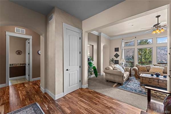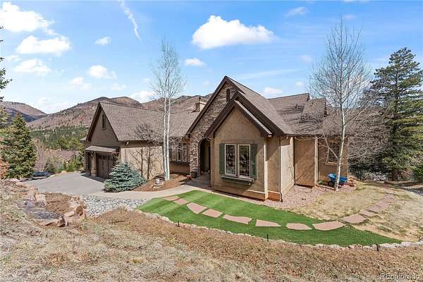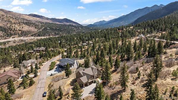 Tucked away on 2.5 private acres just off Pikes Peak Highway, this one of-a kind 4,107 square foot mountain retreat offers the perfect balance of privacy, comfort and unforgettable surroundings. With 4 bedrooms and 4 bathrooms, every inch of this home has been thoughtfully designed with custom touches throughout. Step inside and you’ll immediately notice what sets this home apart. Every window perfectly frames sweeping views of the Rocky Mountains, bringing the outdoors in and creating a sense of calm from every room. Designed for both everyday living and exceptional entertaining, the home features a private movie theatre and a full wet bar, ideal for hosting or unwinding. Built-in speakers throughout the home allow you to seamlessly enjoy your favorite music or podcasts, setting the tone for any moment. Start your mornings on the Trex deck with a cup of coffee as the mountains come to life around you, and end your evenings surrounded by peaceful nature with sunsets that would make Bob Ross blush. The outdoor spaces are just as special, with thoughtfully curated landscaping and beautiful blooms that return year after year, adding color and charm to every season. Adding to its unique appeal, two of your neighbors include Santa himself at the iconic North Pole, Santa’s Workshop and the entrance to America's Mountain Pikes Peak, offering a rare blend of privacy and nostalgic Colorado character. This truly is an opportunity to live in one of the coolest spots in all of Colorado! This is more than a home, it’s a place to slow down, take it all in, and experience Colorado living at its finest.