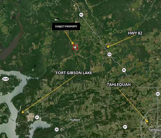 From Tahlequah: Head north on S Muskogee Ave. Turn right onto Hwy 82 and continue north for 17 miles.Turn left onto W 640 road and in 1.6 miles, make a left turn onto S 442 Rd. Head south for 1.1 miles and turn right. Arrive at property entrance.