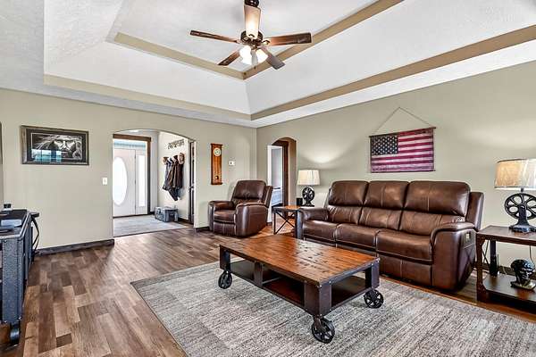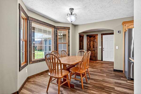 Beautifully updated 3-bedroom, 2-bath home with a 2-car garage, perfectly situated on 5.1 acres in a peaceful country setting,yet offering easy access to the highway.Inside, the inviting living area features a cozy gas fireplace, while the spacious kitchen offers abundant cabinet and counter space, a breakfast nook, and a formal dining room, ideal for both everyday living and entertaining. The split-bedroom floor plan provides added privacy, with a generously sized primary suite that includes a walk-in closet, double vanity, linen storage, and a separate walk-in shower and tub.Enjoy outdoor living with both a covered front porch and a covered back porch. The 5.1 acres in the sought-after Republic School District offer endless possibilities, whether for recreation, or simply enjoying the peaceful setting.Extensive updates provide peace of mind, including new wood fencing (ideal for pets or children), roof (2025), siding (2025), septic system (2024), well (2023), kitchen appliances (2023), generator (2022), and a 12x16 shed with loft (2023). Interior improvements in 2023 include paint, flooring, carpet, trim, and doors, plus a new garage door in 2026.This move-in ready property offers the perfect blend of modern updates, functional space, and country charm, your perfect place to call home awaits.