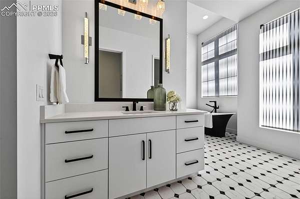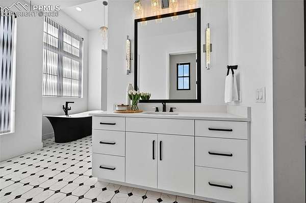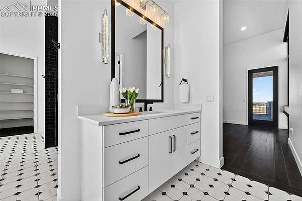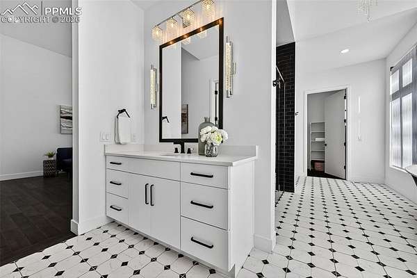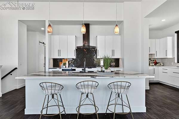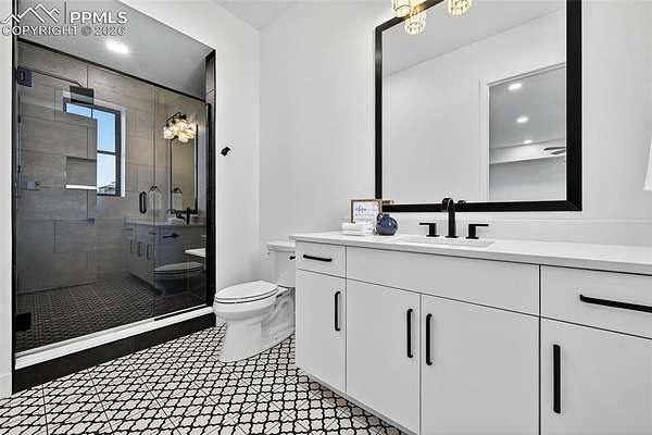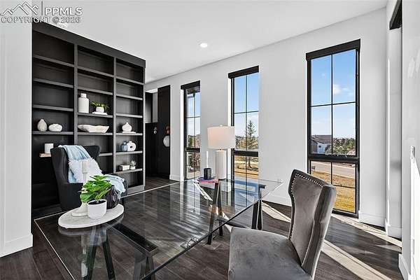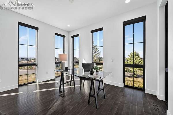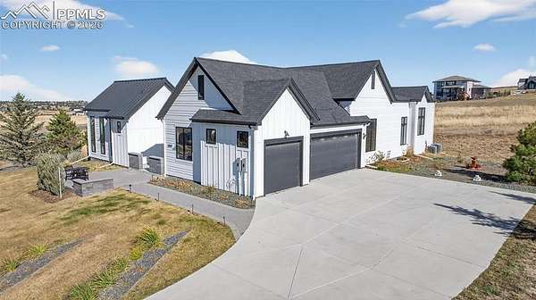 Gorgeous and unique modern farmhouse home with incredible views of the front range! With extra tall ceilings and floor to ceiling windows in almost every room. Private courtyard and a spacious lot make this home an oasis. Step into separate foyer with large windows that let in tons of natural light. A private office with floor to ceiling windows and built in shelves to frame the room in its entirety, next to an extra large powder bath for ease. The kitchen, great room and dining room share an open floor plan, flooded with sunlight from the windows and large multiple panel slider leading out to the covered deck. The kitchen features white cabinets and quartz countertops and an extended scullery kitchen/pantry to the side with all upgraded appliances. The great room stands tall with a floor to ceiling fireplace and views of the open space that wraps the lot. Out the slider is a large wrap-around deck that connects with a private door to the Primary Suite. The Primary Suite offers tall, boasting ceilings and a Master Bath with two vanities, two toilets and two closets, as well as a large zero-entry walk in shower and a spa like free standing tub. Next door to the Primary, the laundry room sits with its own sliding barn door, sink and folding station to make life a breeze. Each secondary bedroom in this home has its own en-suite bathroom with upgraded tiles and quartz countertops that give a modern feel. The lower level rec area is big enough for all activities, with engineered plank flooring and sliding door that leads out to the basement patio and exceptionally manicured side yard. The landscape of this 1.62 acre lot is inhabited by both native grasses and sod, with trees and foliage surrounding pathways and encapsulating the home to make it feel private without sacrificing views. A detached garage is easily installed in the area just off the driveway for a workshop or extra storage! You are going to love living here!