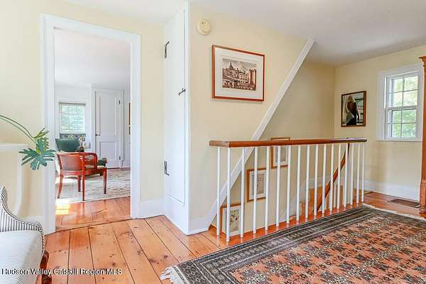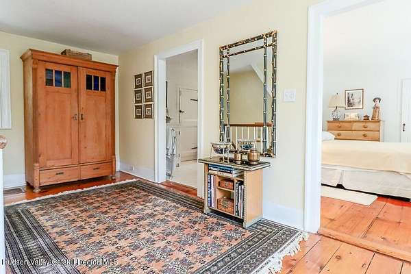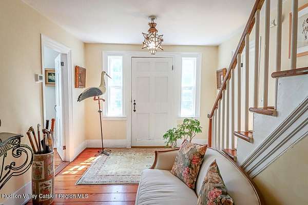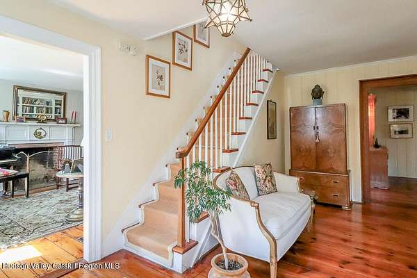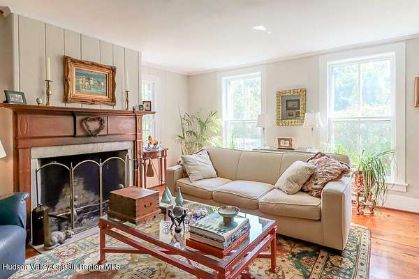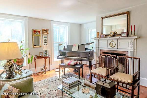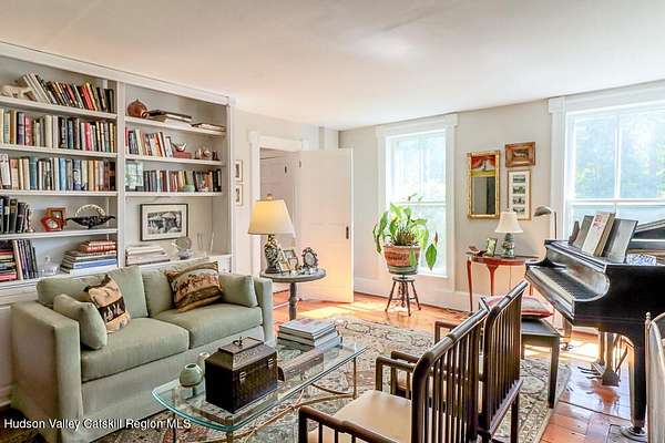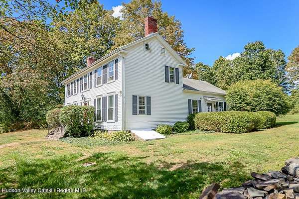 OPEN HOUSE SUN DEC 7 11 AM to 1PM MOTIVATED SELLER!!! Significant PRICE ADJUSTMENT This antique Center Hall Colonial home, circa 1800 is a brilliant GEM of a property, maintaining many original details of the time. The gorgeous wide board flooring, moldings and trim, hardware and doors fire places, built-ins, the staircase and banister all evoke a time of fine craftsmanship and quality. Set on 12 acres, the homes' sun filled gracious rooms provides a year round sanctuary for full time or weekend enjoyment. The home has been lovingly updated over the years, and the beauty of this home is apparent from the moment you enter the home's foyer and peak into the adjoining rooms. The living room and dining room will inspire you to entertain your friends, guests and family The current music room with a grand piano and fireplace is suitable, if needed, for a main floor bedroom. A den/TV room with custom built-ins an updated kitchen and bath and a luxurious screen porch completes the main floor. The upstairs landing feels as important now as it did years ago, with a place for a reading and relaxing nook. Two bedrooms, a large primary and an additional bedroom and bath have great light, and ample storage There is a full walk up attic, a Generac Generator, main floor laundry, a barn/garage and sheds. This property is a gardeners' delight with many fenced in raised beds ready for next spring's planting. There is plenty of open flat fertile land for light farming, animals or an additional structure. This centrally located property is an easy drive to Chatham, Hudson, The Berkshires and Albany.