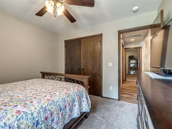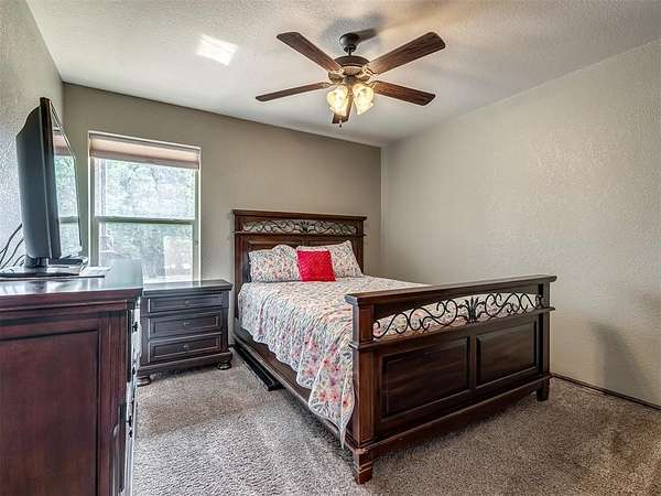 Welcome to this well-maintained 3-bedroom, 2-bathroom home offering 2,157 square feet of living space on 3.36 tree-lined acres. Inside, you'll find an open floor plan that flows easily from the living area into a spacious kitchen, perfect for cooking and entertaining. Each bedroom offers generous space and storage, with an above-ground safe room located inside the home for added security. Step outside to a peaceful backyard featuring a covered patio and built-in fire pit, with lots of mature trees. The roof was replaced in 2024, the AC is 2 years old, and the home comes equipped with a full home generator for year-round peace of mind. Schedule your showing today!