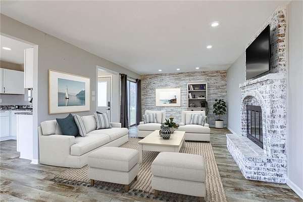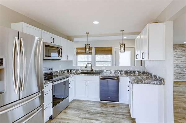 Is the lake life calling to you?! This stunning contemporary farmhouse-style home at Lake Viking might be just what you're looking for. It includes a dedicated boat slip at the nearby Yacht Club. The open-concept main living area features a brand-new kitchen with sleek quartz countertops, a modern sink, and updated appliances. The main floor also offers two bedrooms, including a primary suite with a full bath, a half-bath, and a convenient laundry area. The fully renovated basement adds extra living space with a family room, a full bathroom, and a third bedroom. A charming attic space provides additional sleeping quarters or a fun retreat for kids. Enjoy the outdoors and scenic view on the front deck with stylish cable railings, or host gatherings on the expansive rear deck that leads down to a cozy firepit area. Set on 1.7 peaceful acres, this property offers the serenity of country living with access to all the best lake amenities. A Yacht Club membership is also included, granting access to a private boat slip, boat ramp, clubhouse, and a fish cleaning station.