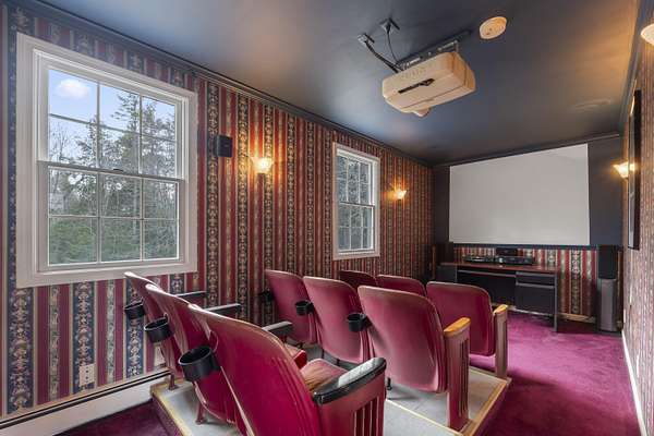 One unforgettable highlight is the vintage movie theater, complete with original seating from Brunswick's historic Evening Star Theater. Additional features include a heated 560 sq ft shed (sq footage - for two floors) which allows for a hobby shop, storage, the possibilities are endless. So important in Maine, there is a generator hookup and a new heating system.