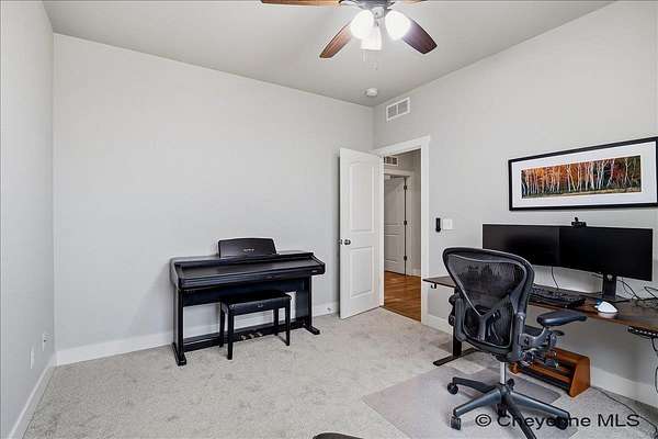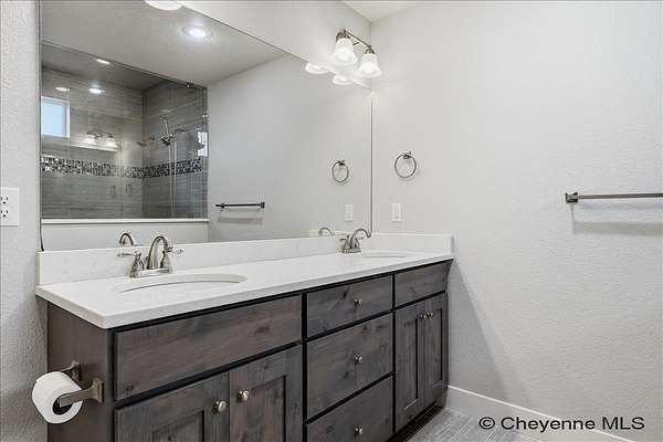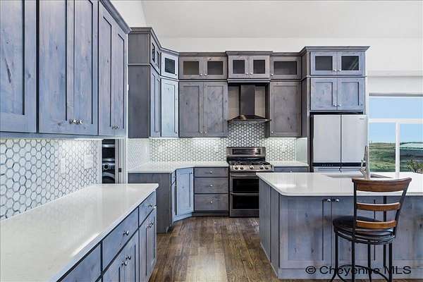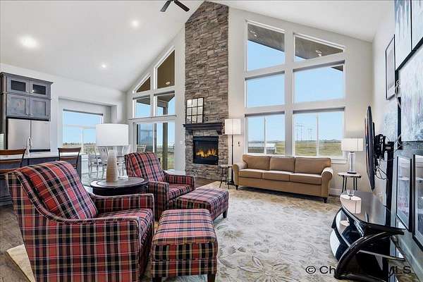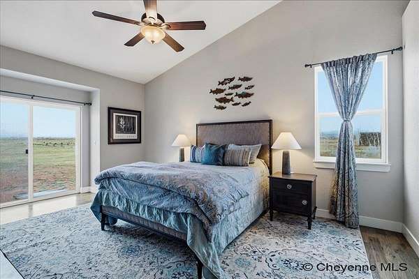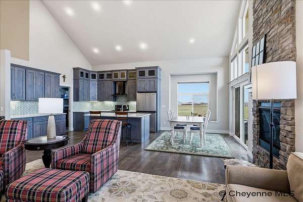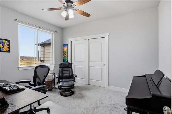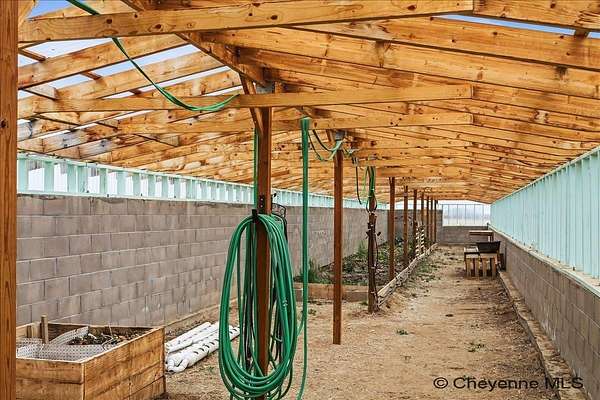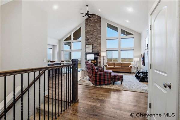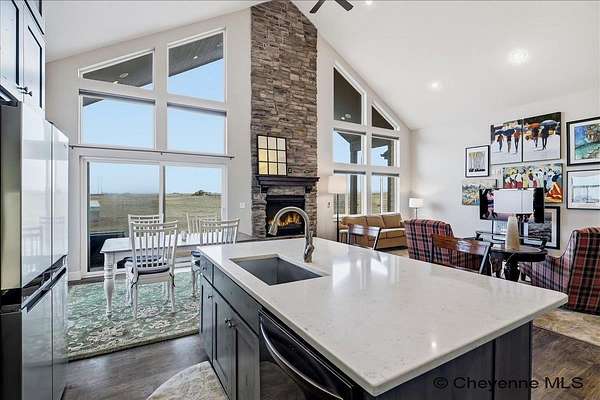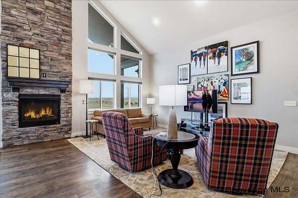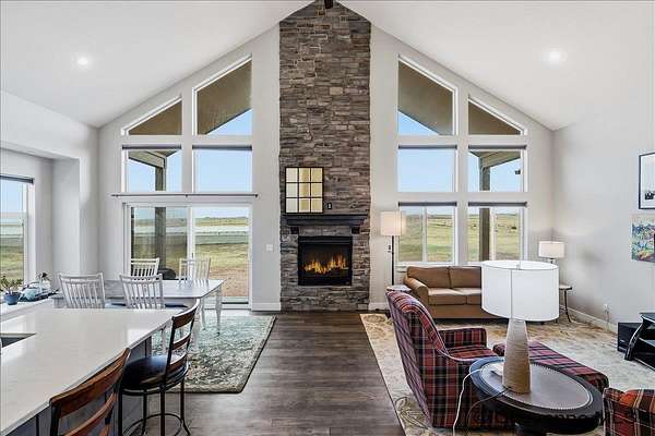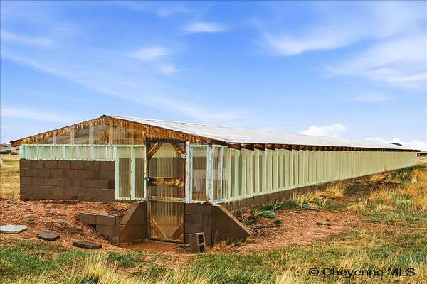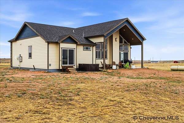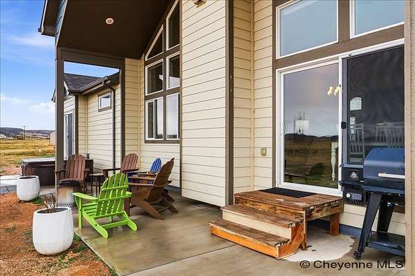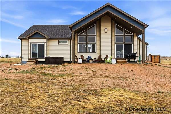 Semi-Custom 2018 Home in Table Mountain Ranches! This stunning, wide-open home offers a bright and inviting floorplan with soaring cathedral ceilings and expansive windows that frame breathtaking mountain views from nearly every room. The gourmet kitchen is a true centerpiece, featuring granite countertops throughout, a massive island, custom cabinetry, black chrome appliances, and a convenient buffet counter with additional storage. Just off the kitchen, you’ll find a large main-floor laundry room with a drop zone, pantry, and wash sink. A dramatic gas fireplace with a floor-to-ceiling stone surround anchors the living area. The spacious primary suite includes a huge 7x9 walk-in closet and a luxurious custom bathroom with a 9x5 dual-head shower. Two oversized secondary bedrooms share a full bath. Downstairs, an unfinished basement with three egress windows offers excellent potential for future living space. Mechanical systems include a tankless water heater, forced-air heating, and central air conditioning. Outside, enjoy the massive covered patio with an included hot tub...the perfect spot for relaxing and watching spectacular mountain sunsets. The fully fenced property includes horse amenities with a loafing shed, tree line on a drip irrigation system, and a custom 116’ x 20’ block/berm greenhouse. Additional 8x8 storage shed for even more storage! Ready for its next owner, this beautiful home truly has it all!