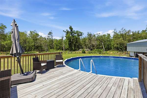 Outdoors, the property is thoughtfully set up for both relaxation and use, featuring multiple fenced areas ideal for animals, a 24x48 pole barn with two horse stalls and a wash rack, and an above-ground pool with a surrounding deck, perfect for enjoying the peaceful setting with summer right around the corner. Both front and rear decks provide additional space to unwind or entertain.