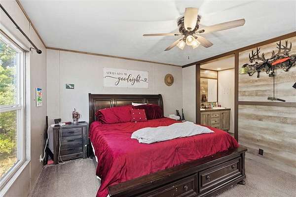 Enjoy peace, privacy, and room to roam with this 2017 manufactured home sitting on 7.91 acres MOL in a secluded, tree-covered setting. This 3-bedroom, 2-bath home features a split-bedroom floor plan offering privacy and functionality. The property is ideal for hunting, outdoor recreation, or a quiet country retreat, with abundant wildlife and mature trees surrounding the home. A newly built man cave to the north adds extra space for hobbies, guests, or entertaining. If you're looking for a private rural property with acreage and great recreational potential, this one is a must-see!