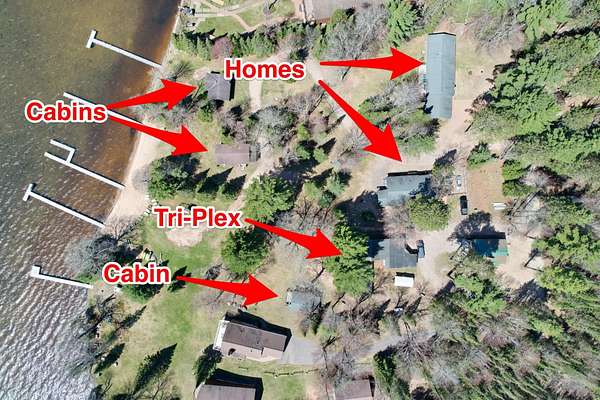Discover Hillcrest Cottages, a charming fully operational lakeside retreat on the north shore of Big St. Germain Lake. This wonderful property features 2 beautiful and large year round homes and 5 well maintained cottages! Each offering a distinctive, memorable Northwoods experience. Well-appointed amenities include fully stocked kitchens, microwaves, coffee makers, flat screen TVs with DirecTV, Wi-Fi, bed linens, picnic tables, charcoal grills, fire pits with firewood, and complimentary canoes and kayaks. Accommodations range from cozy cottages to spacious lodges: Balsam Lodge (sleeps 12-14, year-round), Cedar Lodge (sleeps 2-12, year-round), Pine (sleeps 2-4, May-Oct), Maple (sleeps 8, May-Oct), Oak (sleeps 5-6, May-Oct), Birch (sleeps 2-4, May-Oct), and Spruce (sleeps 5-6, May-Oct). Ideally located near scenic snowmobile, hiking, and biking trails, as well as vibrant local dining and shopping. An exceptional investment in an unforgettable destination.